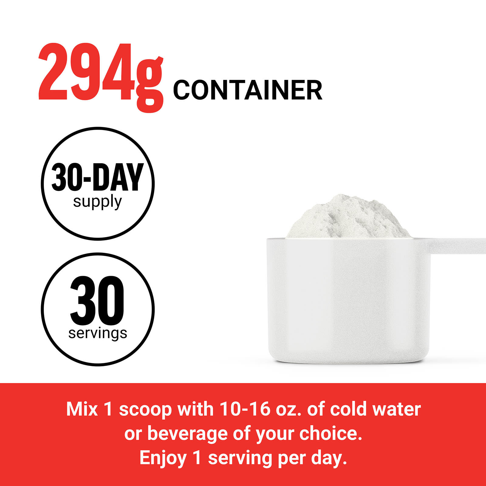 Смешайте 1 мерную ложку с 10–16 унциями холодной воды или напитка по вашему выбору, меняя количество жидкости для достижения желаемого вкуса. Принимайте 1 порцию в день.