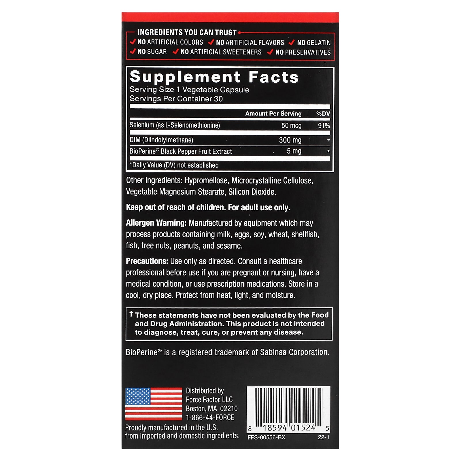 300 мг высококачественного DIM в каждой капсуле, а также экстракт плодов черного перца BioPerineⓇ и селен помогают вам быть уверенными, что вы получаете эффективную дозу и быстрое усвоение для оптимальной работоспособности.
