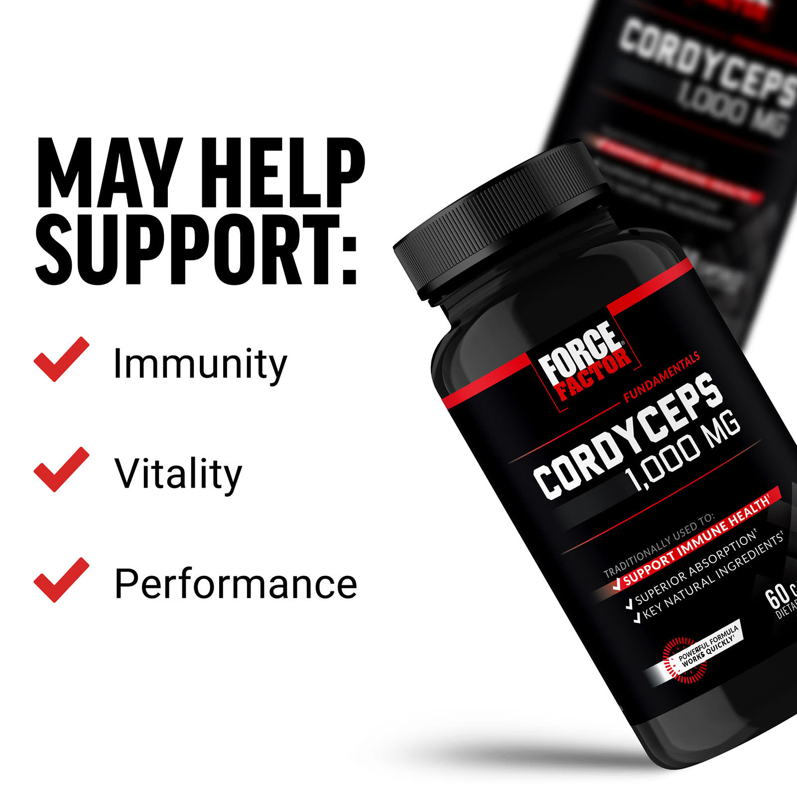 Кордицепс — это мощный адаптогенный гриб, который традиционно используется для поддержки иммунитета, жизненной силы, работоспособности и многого другого. Кордицепс Force Factor® содержит 1000 нг экстракта кордицепса премиального качества в сочетании с BioPerine® для лучшего усвоения. Кордицепс от Force Factor может помочь вам, если вы спортсмен, активный взрослый или просто хотите укрепить естественную защиту своего организма.