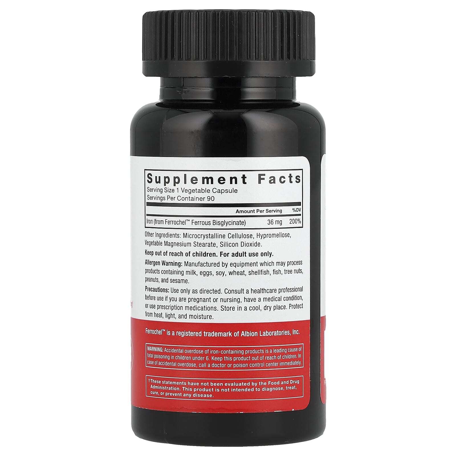 Iron (from Ferrochel™ Ferrous Bisglycinate) | 36 mg | 200% |