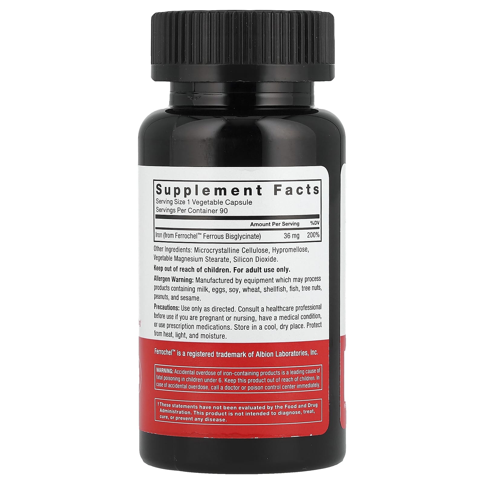 | Iron (from Ferrochel™ Ferrous Bisglycinate) | 36 mg | 200% |