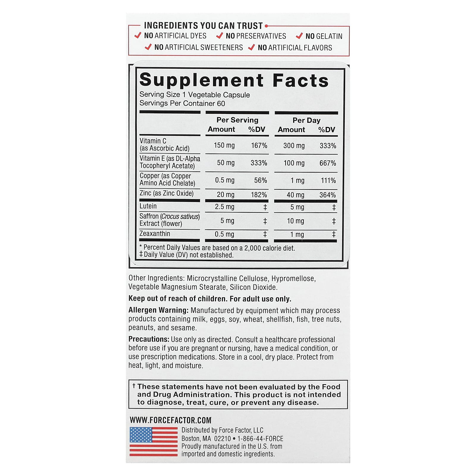 Force Factor® Complete Eye Health содержит научно проверенные ингредиенты, поддерживающие здоровье глаз и хорошее зрение: