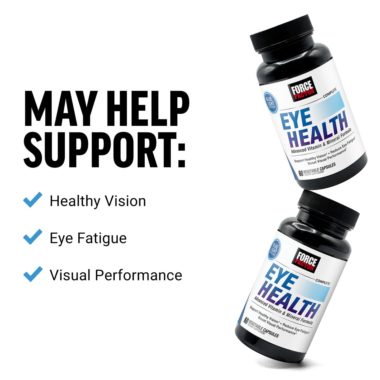 Force Factor® Complete Eye Health - это мультифункциональная формула, которая поддерживает зрение и защищает от вредного синего света. Каждая доза содержит уникальную смесь витаминов, минералов и антиоксидантов, лютеина и зеаксантина, которые питают ваши глаза, снижая усталость и улучшая зрение. Работаете ли вы, студент, геймер или проводите много времени за цифровыми устройствами, Force Factor Complete Eye Health - это единственная формула, которую вы должны иметь в виду.