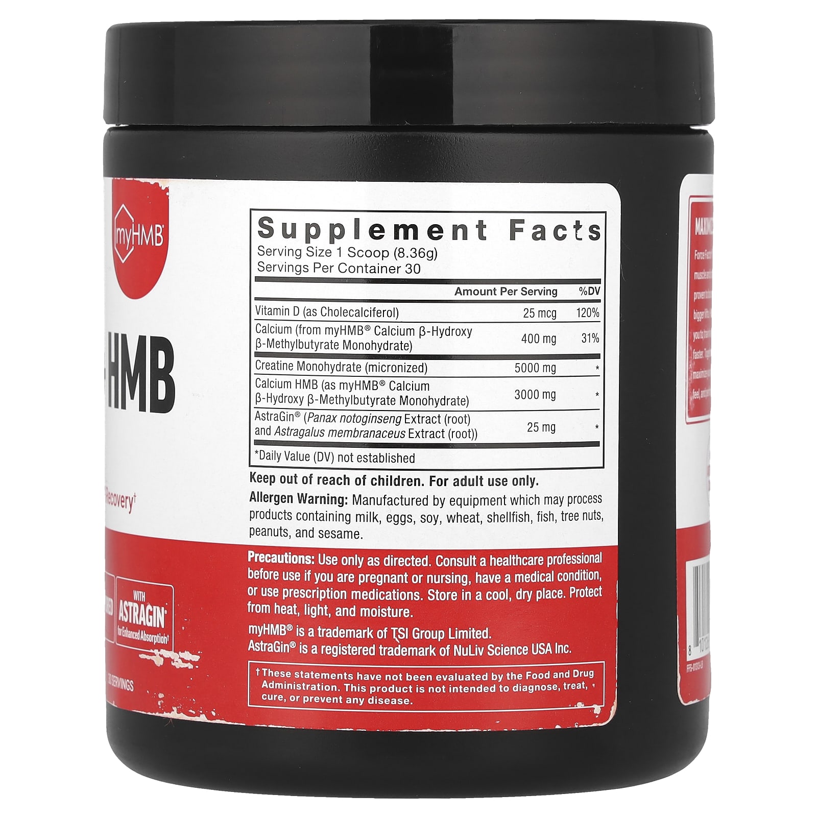 | Кальций HMB (в виде моногидрата ß-гидрокси ß-метилбутирата кальция myHMB®) | 3000 мг | * |