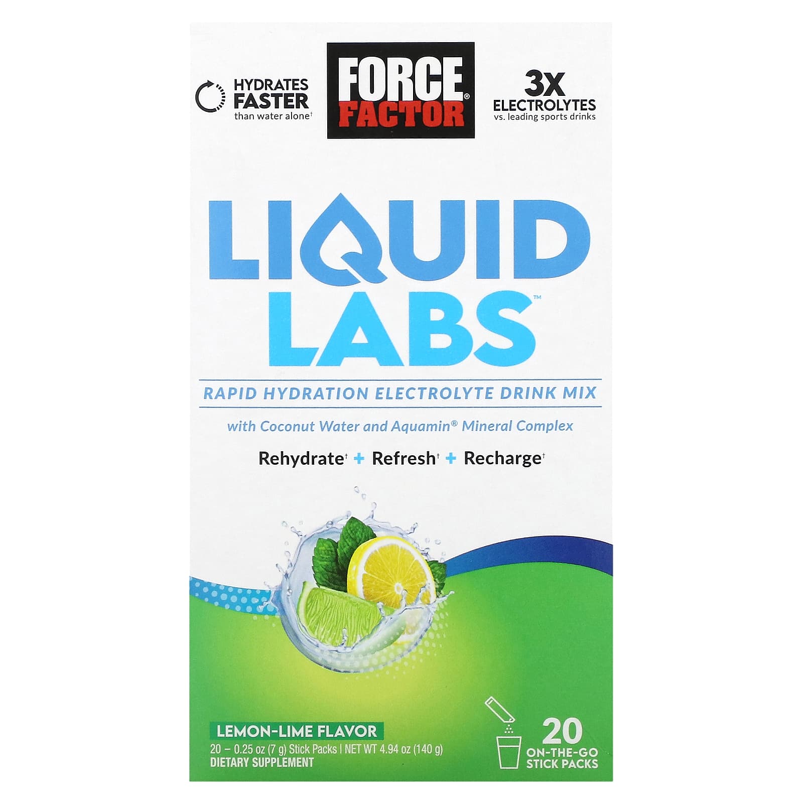 Force Factor, Liquid Labs, лимон и лайм, 20 пакетиков по 7 г (0,25 унции)