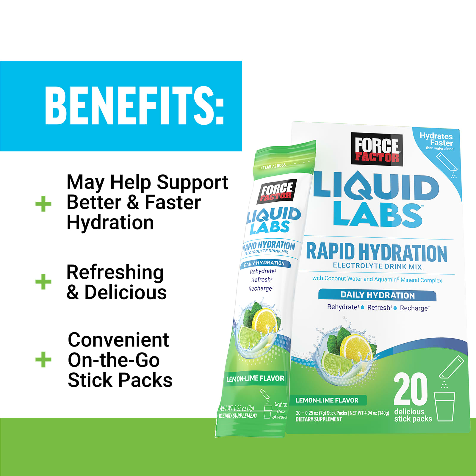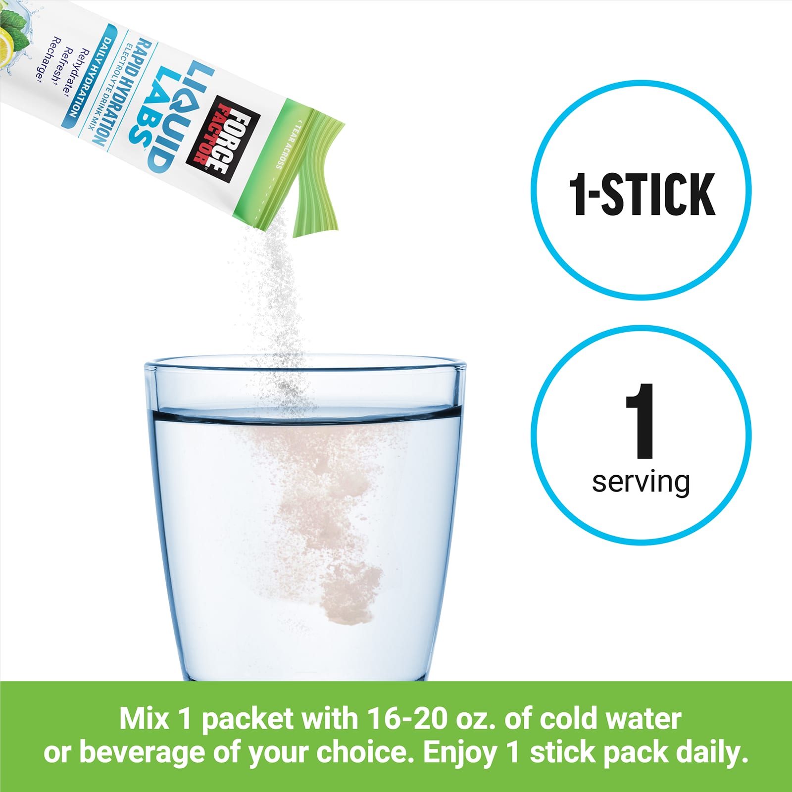Force Factor, Liquid Labs, смесь для быстрого приготовления электролитов, лимон и лайм, 1 шт., 7 г (0,25 унции)