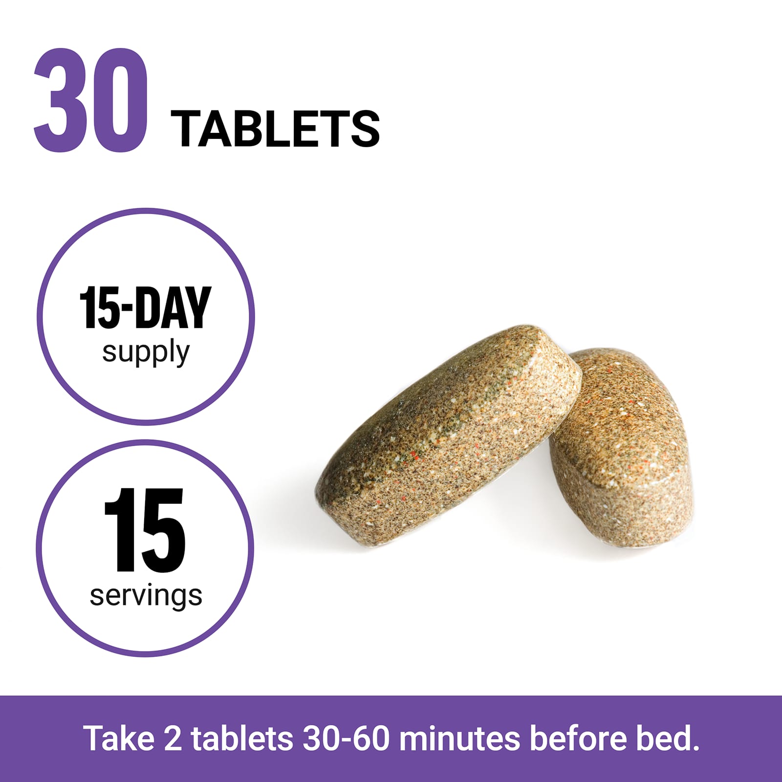 Принимайте по 2 таблетки за 30–60 минут до сна.