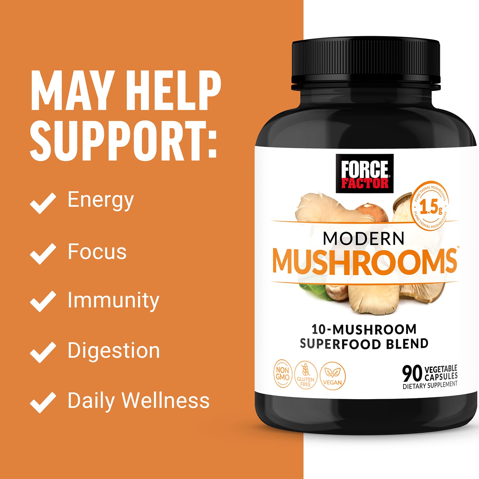 Грибы употребляли в пищу на протяжении веков из-за их многочисленных полезных свойств. Некоторые считают, что в них залог здоровья и долголетия. Капсулы Modern Mushrooms ™ содержат супер-смесь 10 самых популярных видов грибов, которая поможет вам повысить энергию, иммунитет, концентрацию внимания, пищеварение и многое другое.