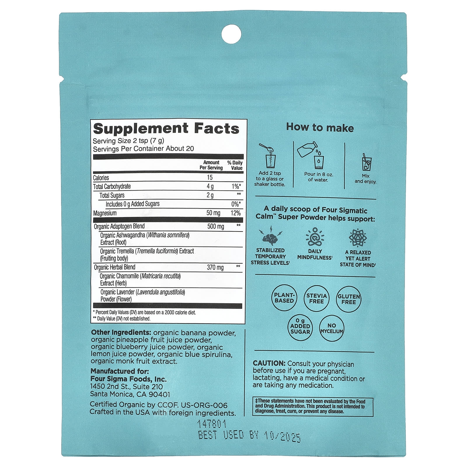| Смесь из органических трав экстракт органической ромашки (Matricaria recutita), Порошок из цветков органической лаванды (Lavandula angustifolia) | 370 мг | ** |