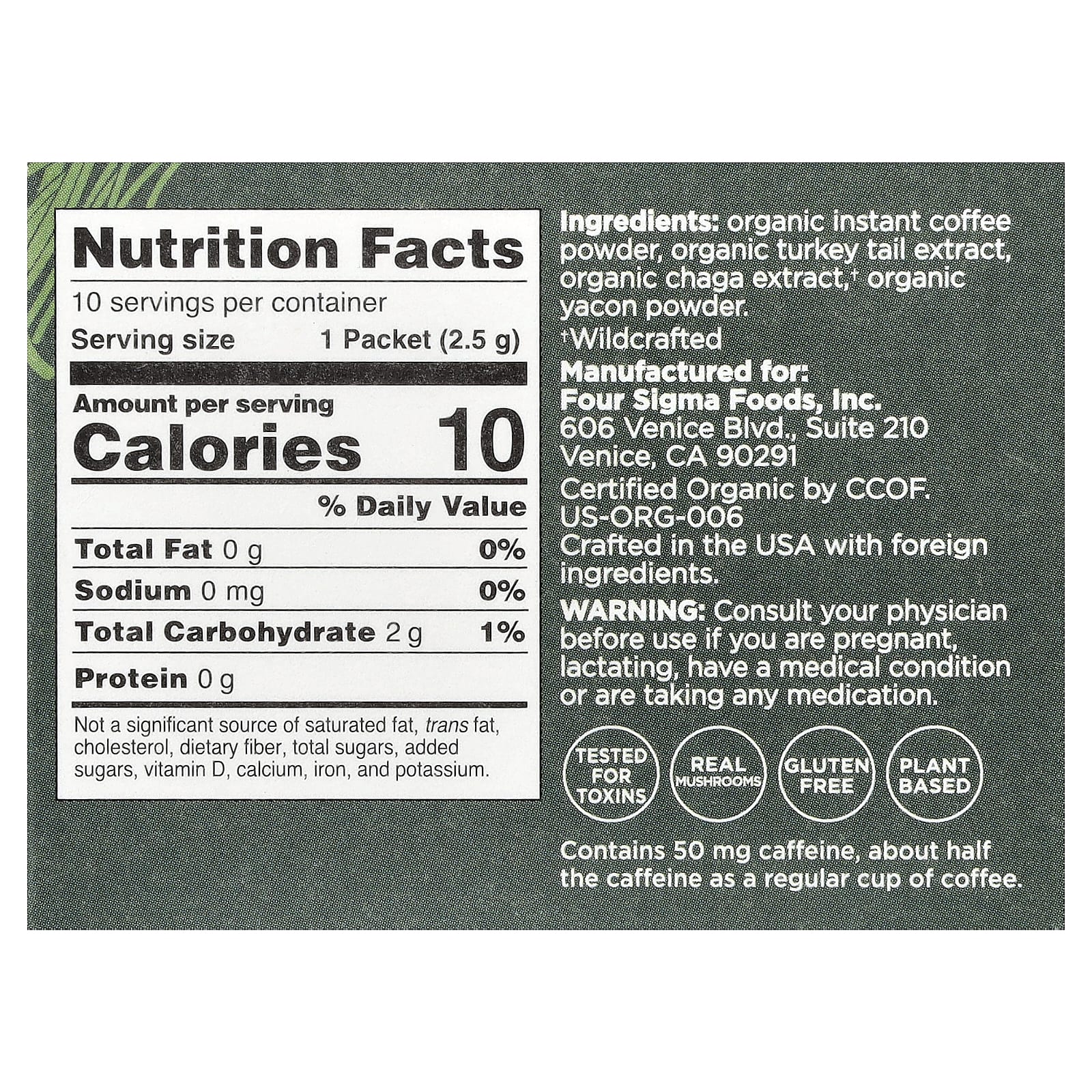 Органический растворимый кофе в порошке, экстракт органического трутовика разноцветного, органический экстракт чаги*, порошок из органического якона.