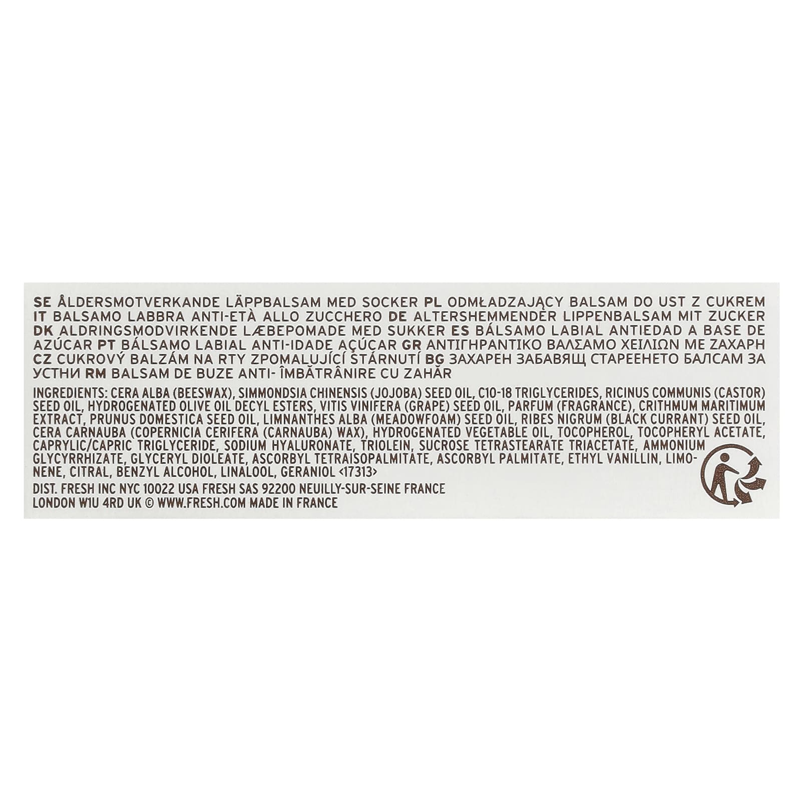 Cera alba (пчелиный воск), масло семян жожоба (Simmondsia chinensis), c10-18 триглицериды, касторовое масло (ricinus communis), дециловые эфиры гидрогенизированного оливкового масла, Vitis vinifera (масло из виноградных косточек), парфюмерная композиция (отдушка), экстракт критмума (Crithmum maritimum), масло семян чернослива (Prunus domestica), масло из семян пенника лугового (Limnanthes alba), масло семян черной смородины (Ribes nigrum), карнаубский воск (Copernicia cerifera), гидрогенизированное растительное масло, токоферол, токоферилацетат, каприловый / каприновый триглицерид, гиалуронат натрия, триолеин, тетрастеарат триацетат сахарозы, глицирризат аммония, глицерил диолеат, аскорбил тетраизопальмитат, аскорбил пальмитат, этил ванилин, лимонен, цитраль, бензиловый спирт, линалоол, гераниол.