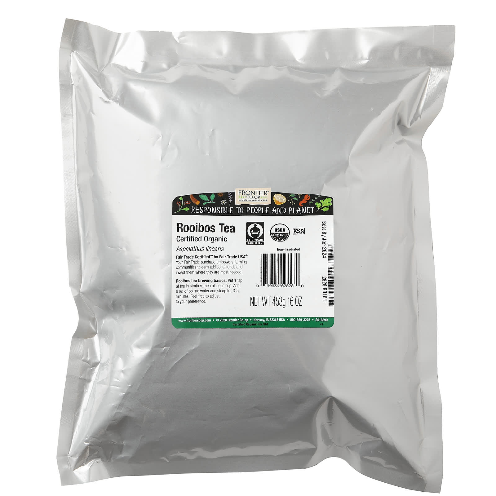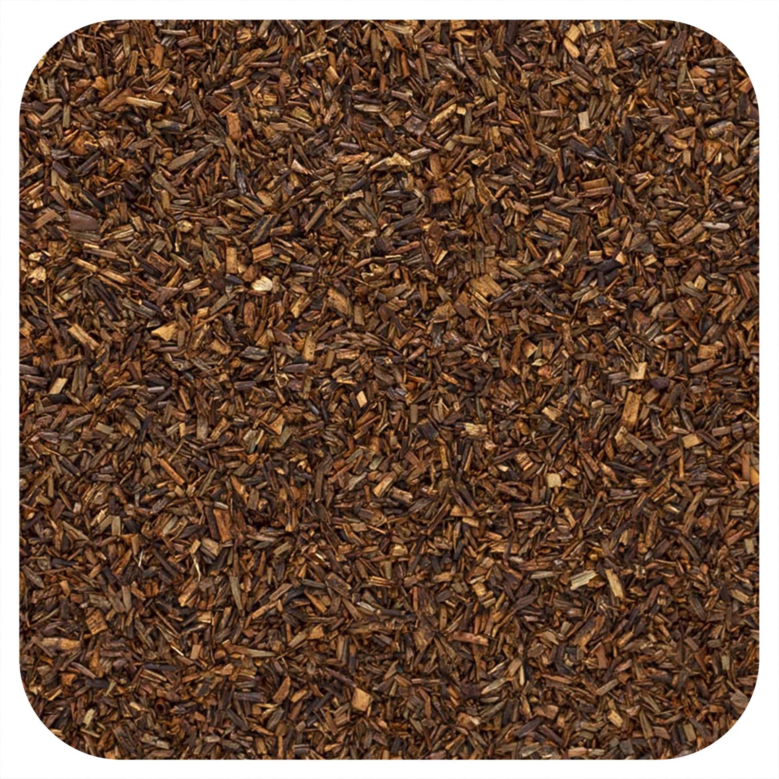 Органический нерасфасованный чай ройбуш от Frontier Co-op имеет сертификат Fair Trade Certified™. Это мягкая, красновато-коричневая альтернатива с мягким, фруктово-цветочным, слегка сладким и ореховым вкусом, не требующим подсластителей. Чай не содержит кофеина, является идеальным вечерним напитком и прекрасно подходит к десертам.