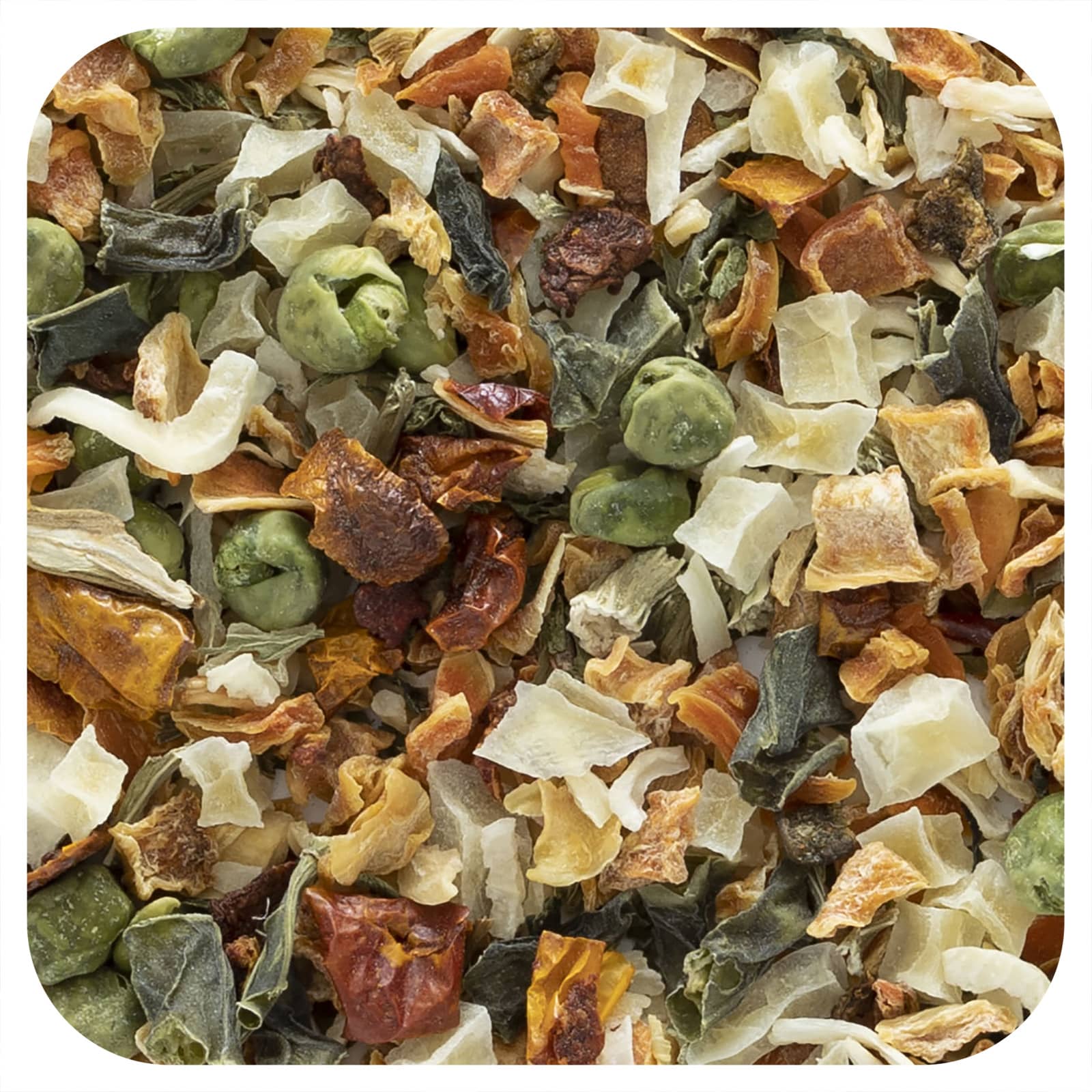 Овощная смесь для супа Frontier Co-op® Deluxe — это идеальное сочетание простых в приготовлении овощей, включая лук, морковь, горох и картофель. Эта ароматная смесь очень хорошо сочетается с супами, рагу и готовыми блюдами, в состав которых входят овощи. Кроме того, они прекрасно подходят для жарки, охлажденных салатов или в качестве гарнира.