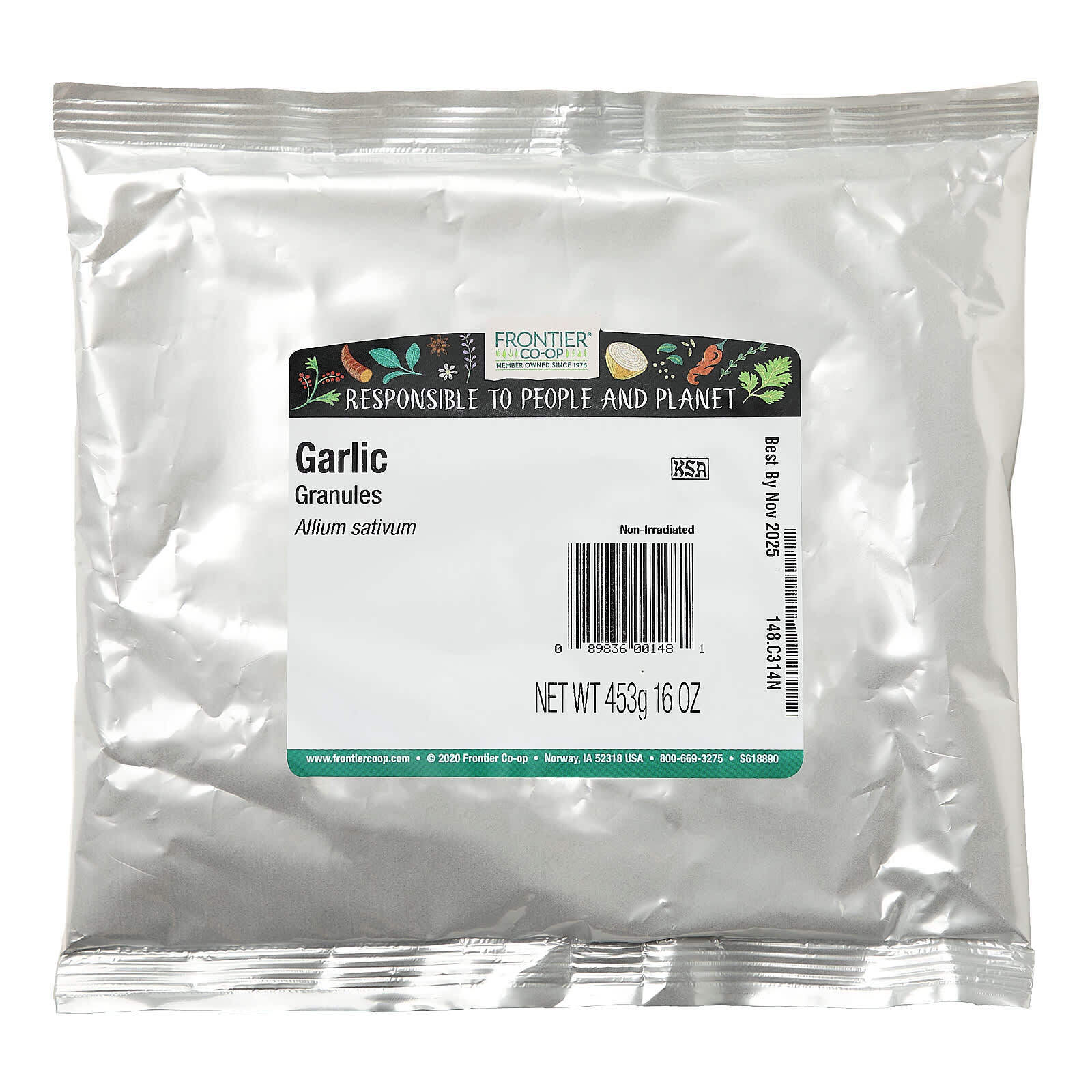 Чеснок имеет сильный, резкий запах и пикантный, острый и слегка горький вкус. Соединения в чесноке, отвечающие за его проникающий аромат и вкус, ценятся как за их пользу для здоровья, так и за кулинарные качества. Чесночные гранулы Frontier Co-op® подходят практически к любым пикантным пищевым продуктам. Их цвет — кремово-белый с минимальным количеством коричневых или зеленых вкраплений из-за кожуры или верхушки чеснока. Гранулы чеснока Frontier — это сертифицированный кошерный продукт, который не подвергался облучению.