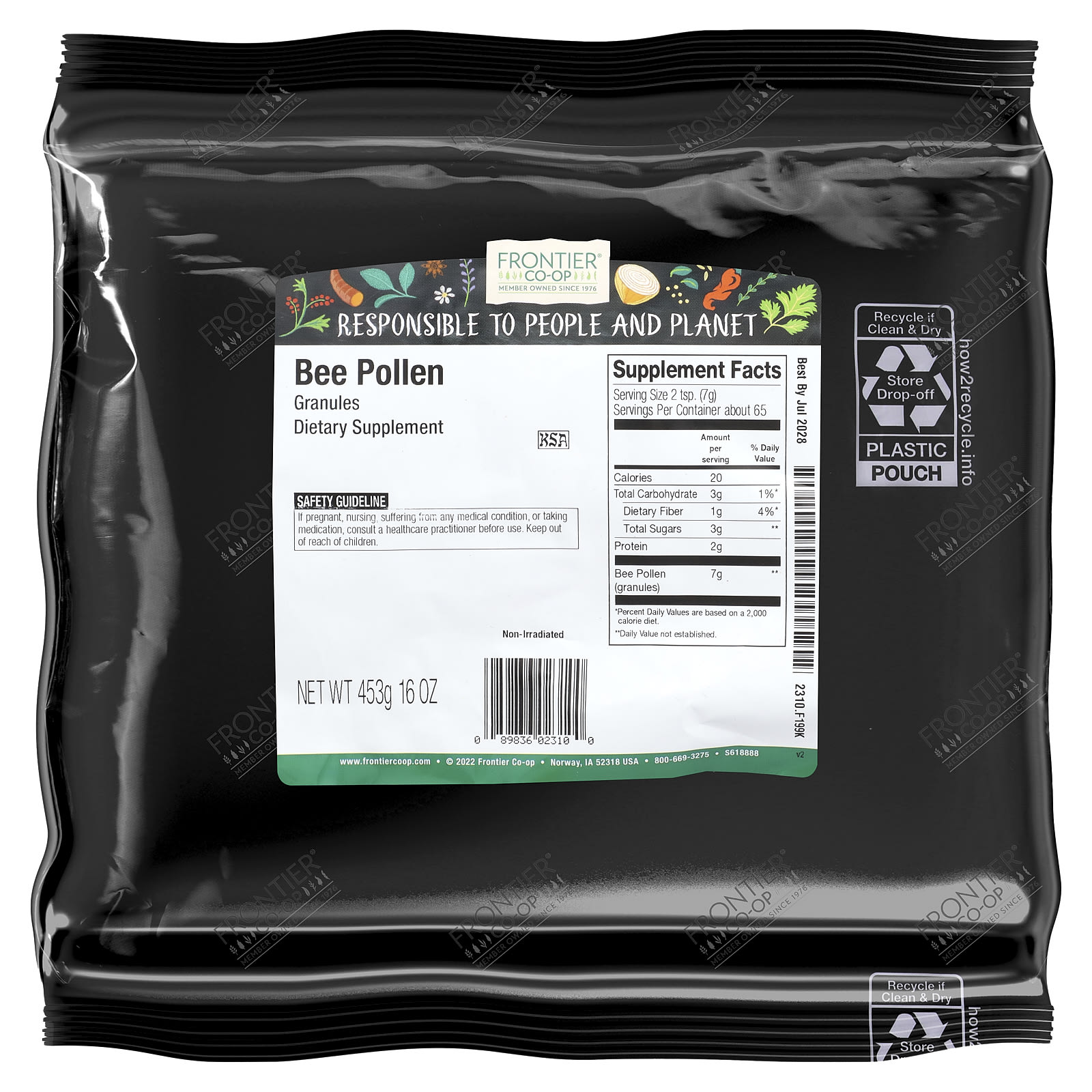 Пчелиная пыльца Frontier Co-op собирается в зоне с низким содержанием пестицидов, очищается вручную и упаковывается в коробки для отправки. Этот продукт не подвергается нагреванию и механически не обрабатывается, поэтому его можно считать необработанным. Пчелиная пыльца — это чистая пыльца растений, собранная пчелами. Она питательна и имеет сладкий вкус.