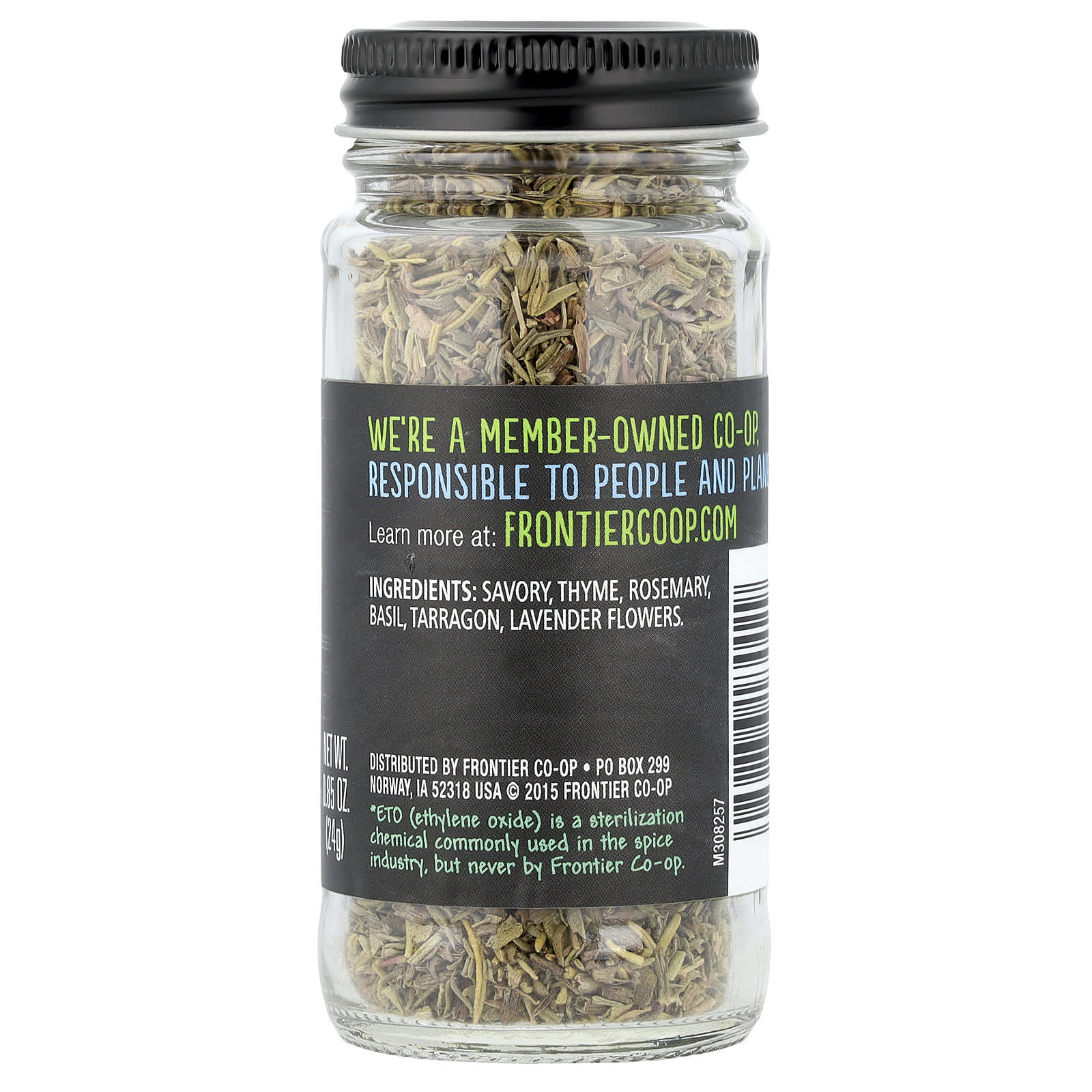 Frontier Co-op® Herbes de Provence is a traditional French blend of aromatic herbs including savory, thyme, rosemary, basil, tarragon, and lavender flowers. The flavor of herbes de provence is distinctive without being overpowering and makes it an ideal addition to any dish, and is is great for delivering a flavorful flair to seemingly bland dishes.