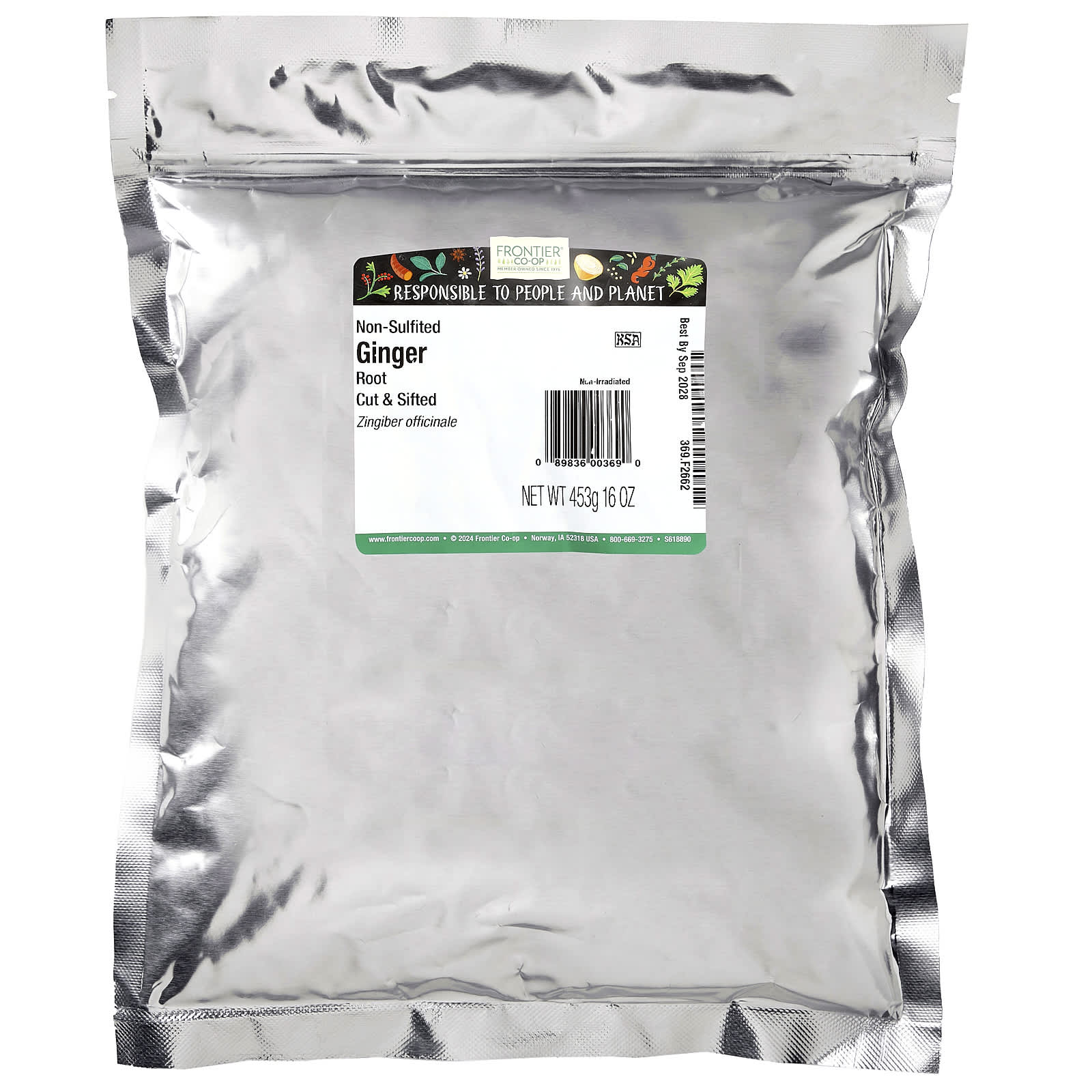 Нарезанный и просеянный корень имбиря Frontier Co-op® - это удобная форма специи, которая используется в кухнях всего мира благодаря его теплому, пряно-сладкому вкусу и аромату. Этот имбирь очищают от кожуры и просеивают, не содержит сульфитов и сертифицировано как кошерный продукт.