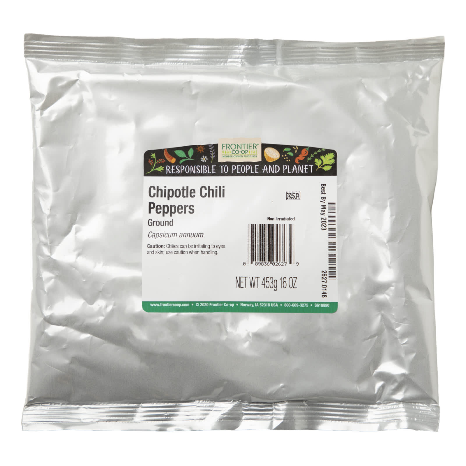 Перец чипотле от Frontier Co-op, название которого происходит от слова chilpoctli на языке науатль (что означает «копченый чили»), на самом деле представляет собой сушеный копченый перец халапеньо. Благодаря сладко-дымному аромату он часто используется в блюдах юго-западной и мексиканской кухни для придания мягкой, но характерной пряности любому блюду — от чили до барбекю.