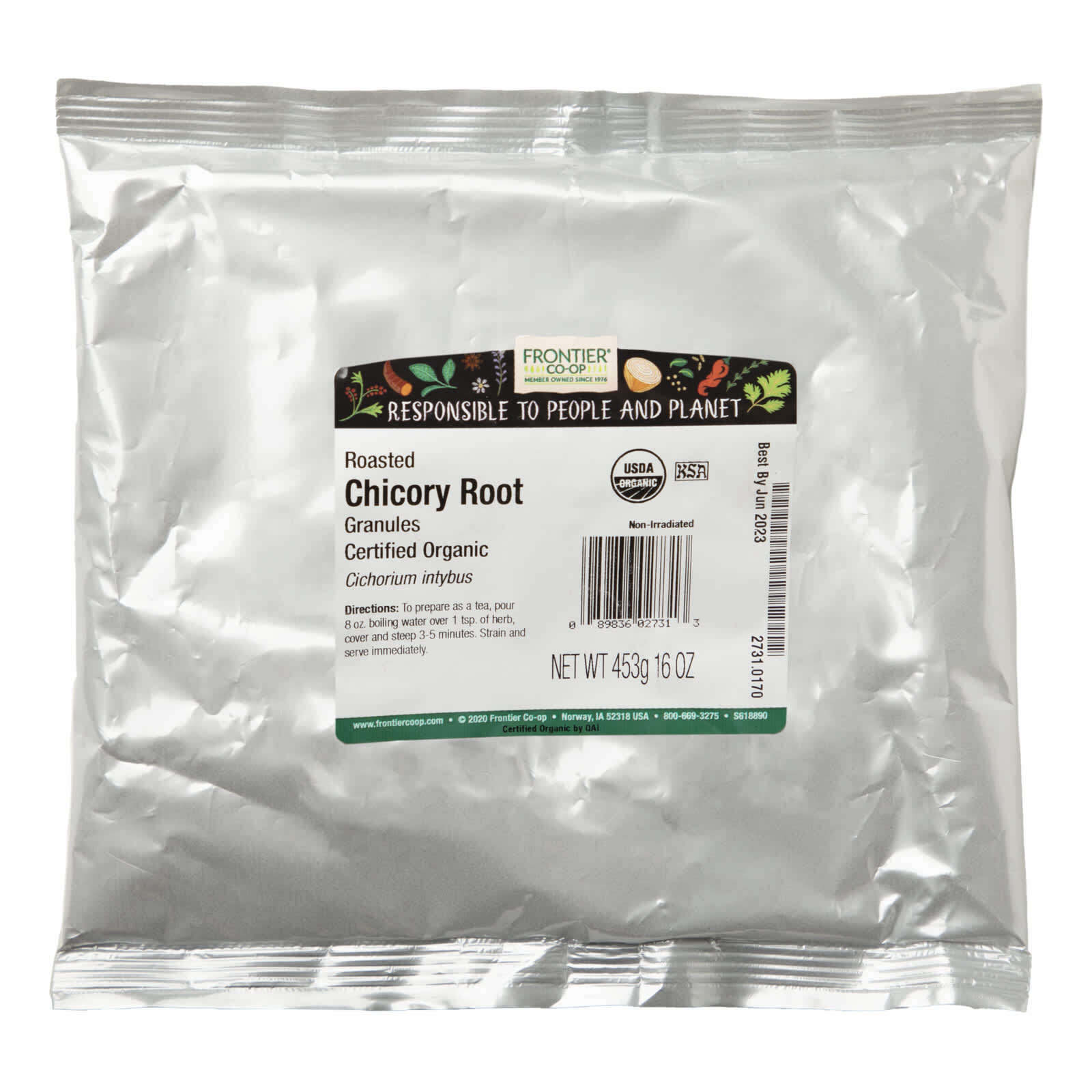 АРОМАТ. Корень цикория Frontier Co-op измельчается и обжаривается для получения насыщенного вкуса. Корень цикория по вкусу похож на кофе, но обладает характерным, более жареным ароматом и содержит небольшое количество кофеина.