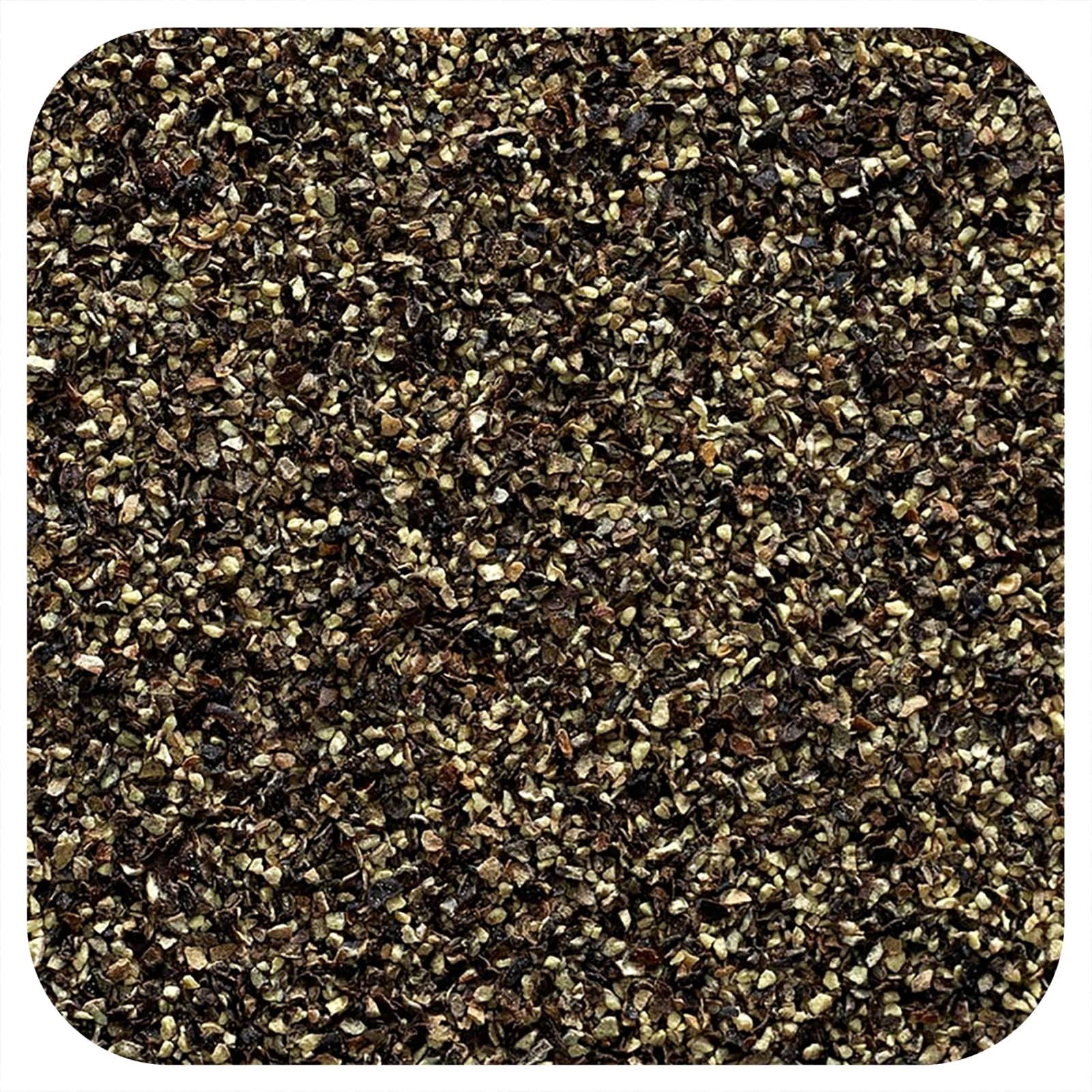 Frontier® Organic Coarse Grind Black Pepper lends satisfying heat and bite to most any dish. It works well in combination with other herbs and spices and is commonly found in spice blends. Black pepper's woody, floral and pungent flavor is thought to inspire the appetite. Our black pepper is carefully selected from the world's premier pepper-producing regions. Because the coarse grind so closely resembles the look and flavor of freshly ground peppercorns, it's often favored by gourmet cooks. Our coarse-grind, bulk black pepper is kosher certified and non-irradiated.