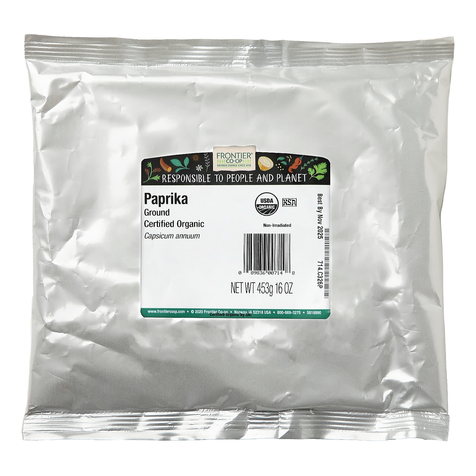 Органическая молотая паприка Frontier Co-op изготавливается из сладкого, но дерзкого родственника острого перца чили. Перец паприка, также известный как сладкий красный перец или вишневый перец, имеет большой размер и отличается мягкостью. Наша паприка придает яркий, естественный цвет и теплый, слегка пряный вкус всем блюдам: от супов, тушеных блюд и злаков до различных закусок.