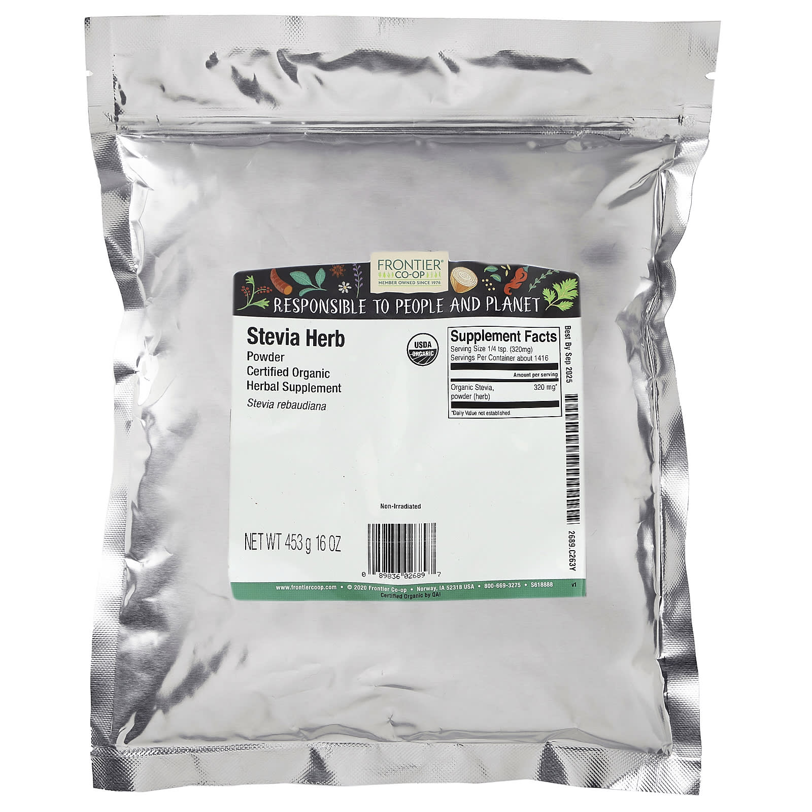 НАТУРАЛЬНЫЙ СЛАДКИЙ ПРОДУКТ. Порошок из зеленой стевии Frontier Co-op — это мелко измельченный порошок, который легко добавлять любые продукты. Он обладает сладким, приятным и освежающим вкусом без запаха и аромата. Он готов к использованию без предварительной подготовки.