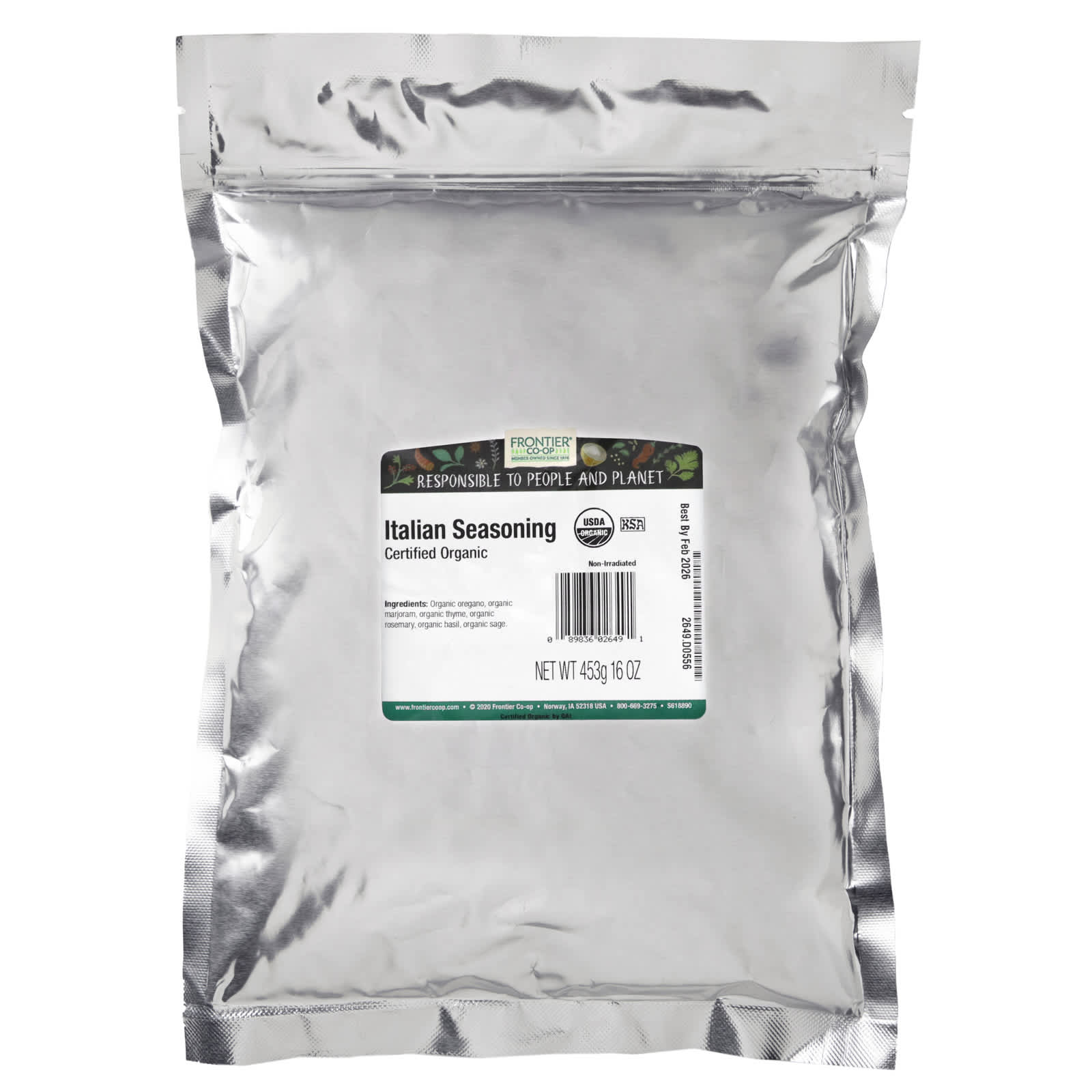 Organic oregano, organic marjoram, organic thyme, organic rosemary, organic basil, organic sage.
