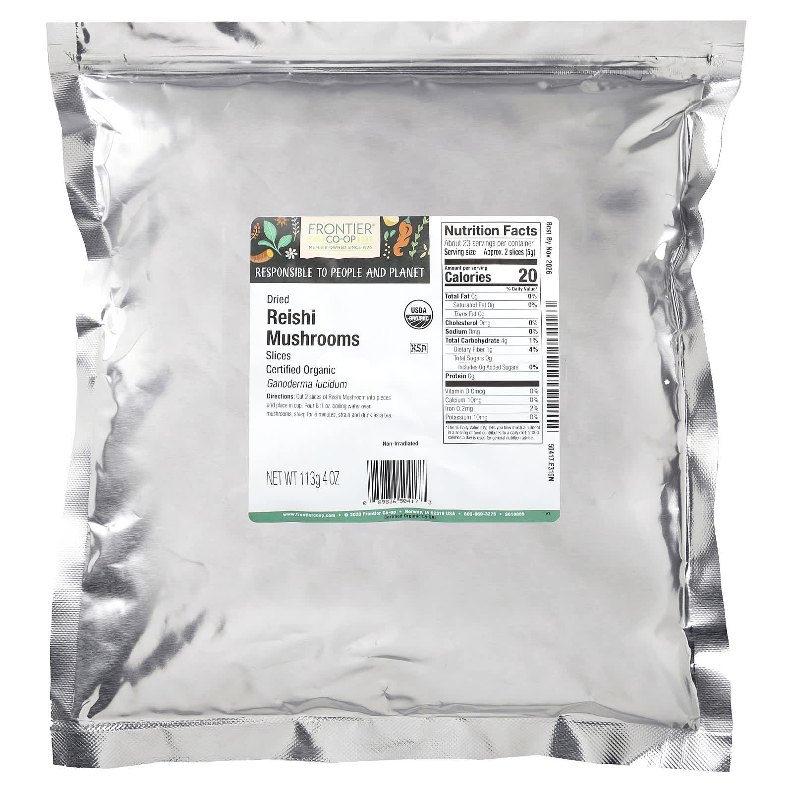 Сушеные грибы рейши Frontier Co-op® обладают отчетливым древесным и землистым вкусом, придают насыщенный вкус и ощутимый вкус разнообразным блюдам и напиткам.