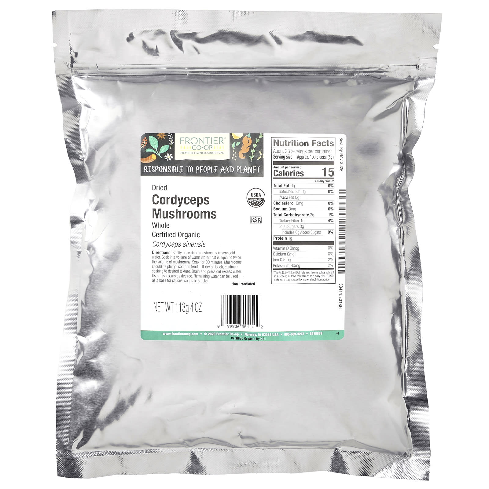 Сушеные цельные грибы кордицепс Frontier Co-op® сочетают в себе землистые и ореховые нотки с легким оттенком умами, чтобы придать блюдам, супам и чаю дополнительную глубину вкуса.