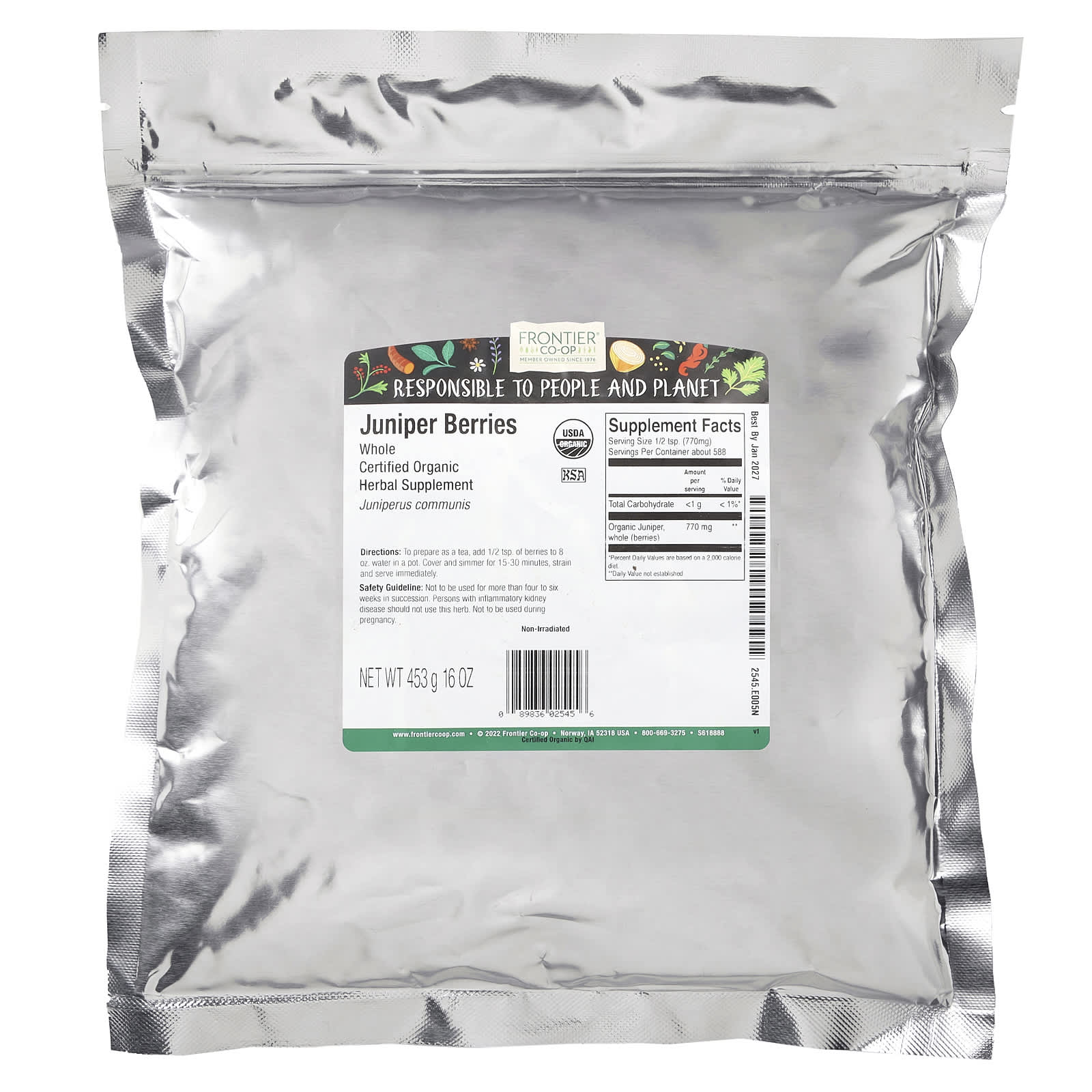 | Органический можжевельник, цельный (ягоды) | 770 мг | ** |