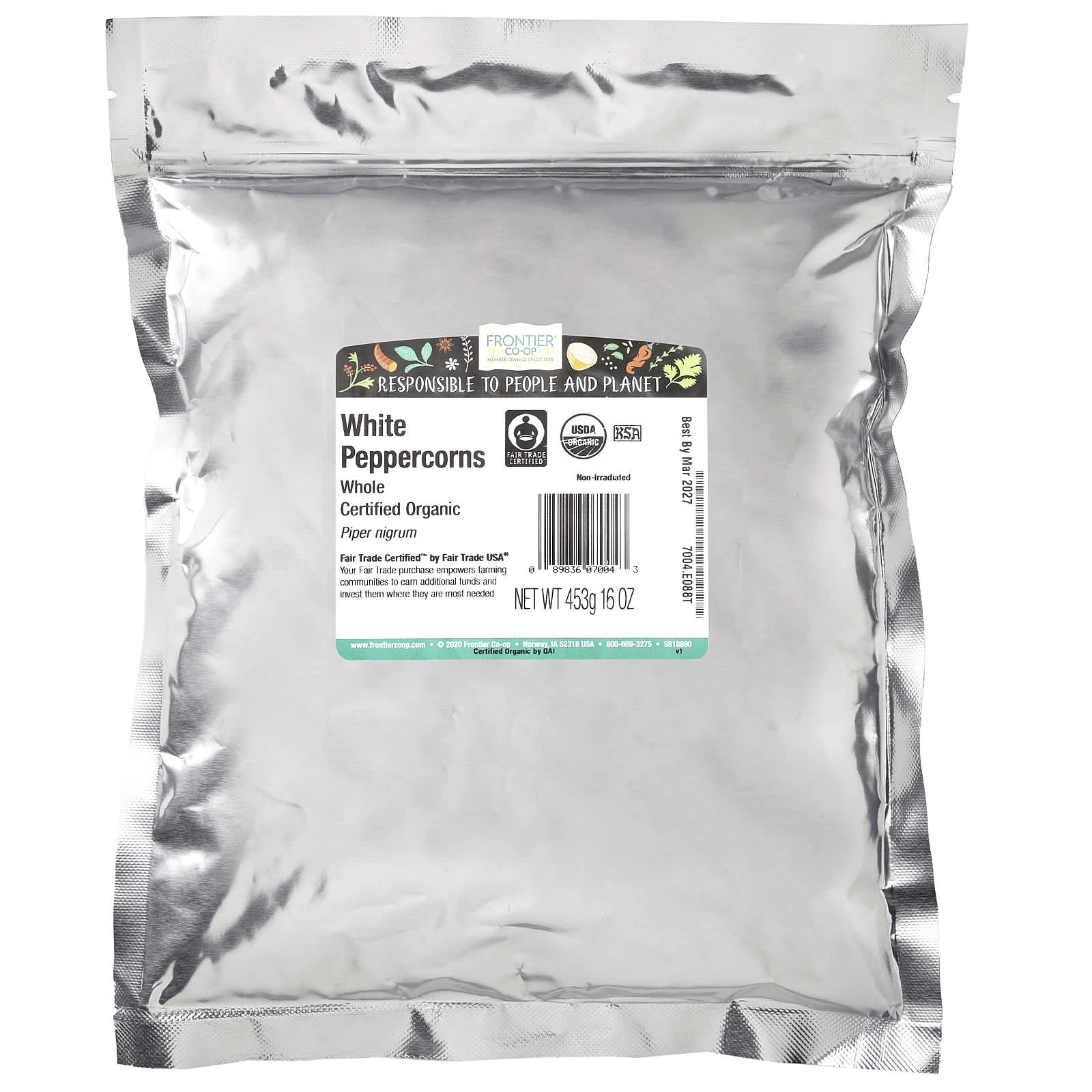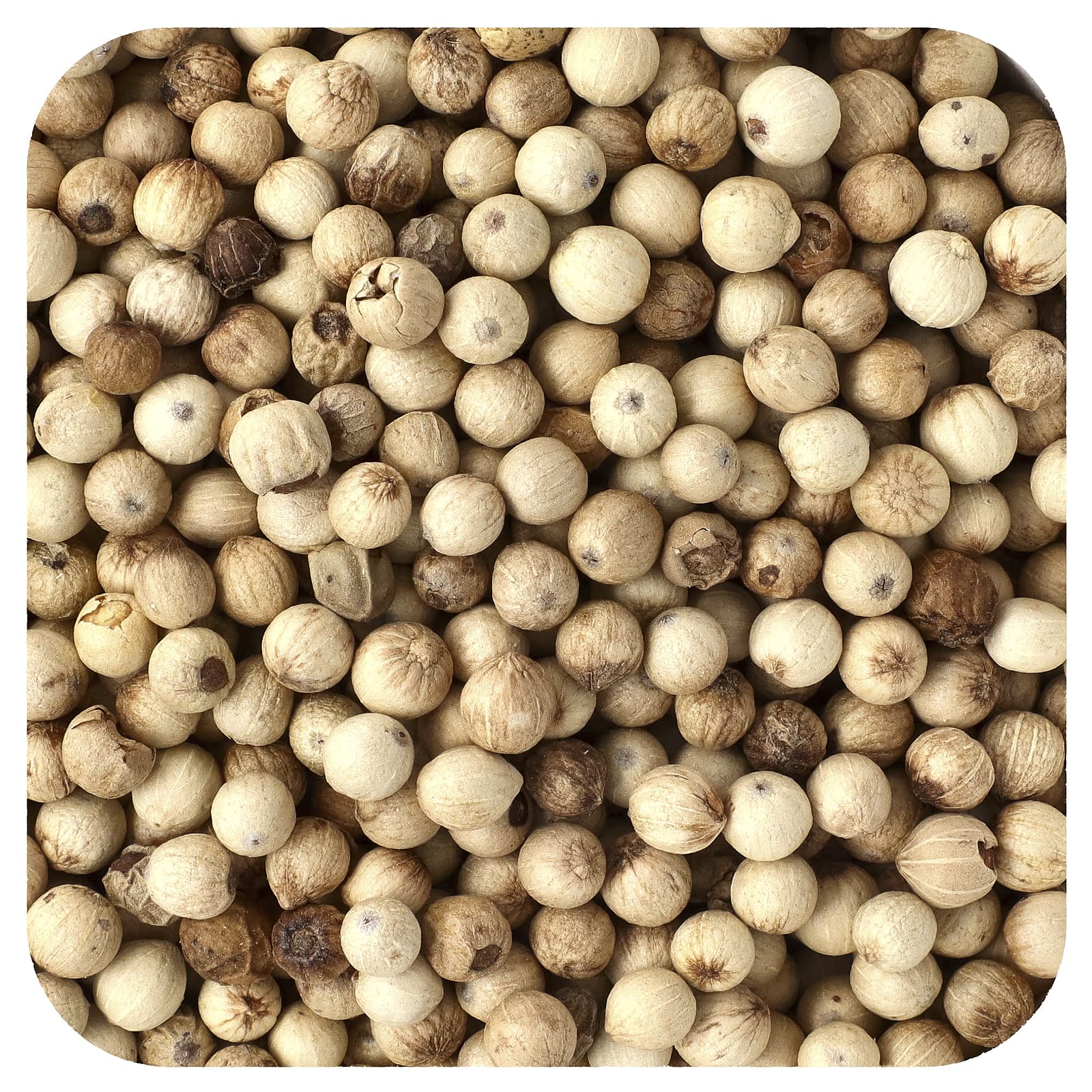 Горошек белого перца - это полностью созревшие ягоды, которые сушат на солнце после удаления красной кожуры. Повара для гурманов часто используют белый перец для ароматизации белых соусов и других светлых блюд из-за его цвета и более нежного вкуса.
