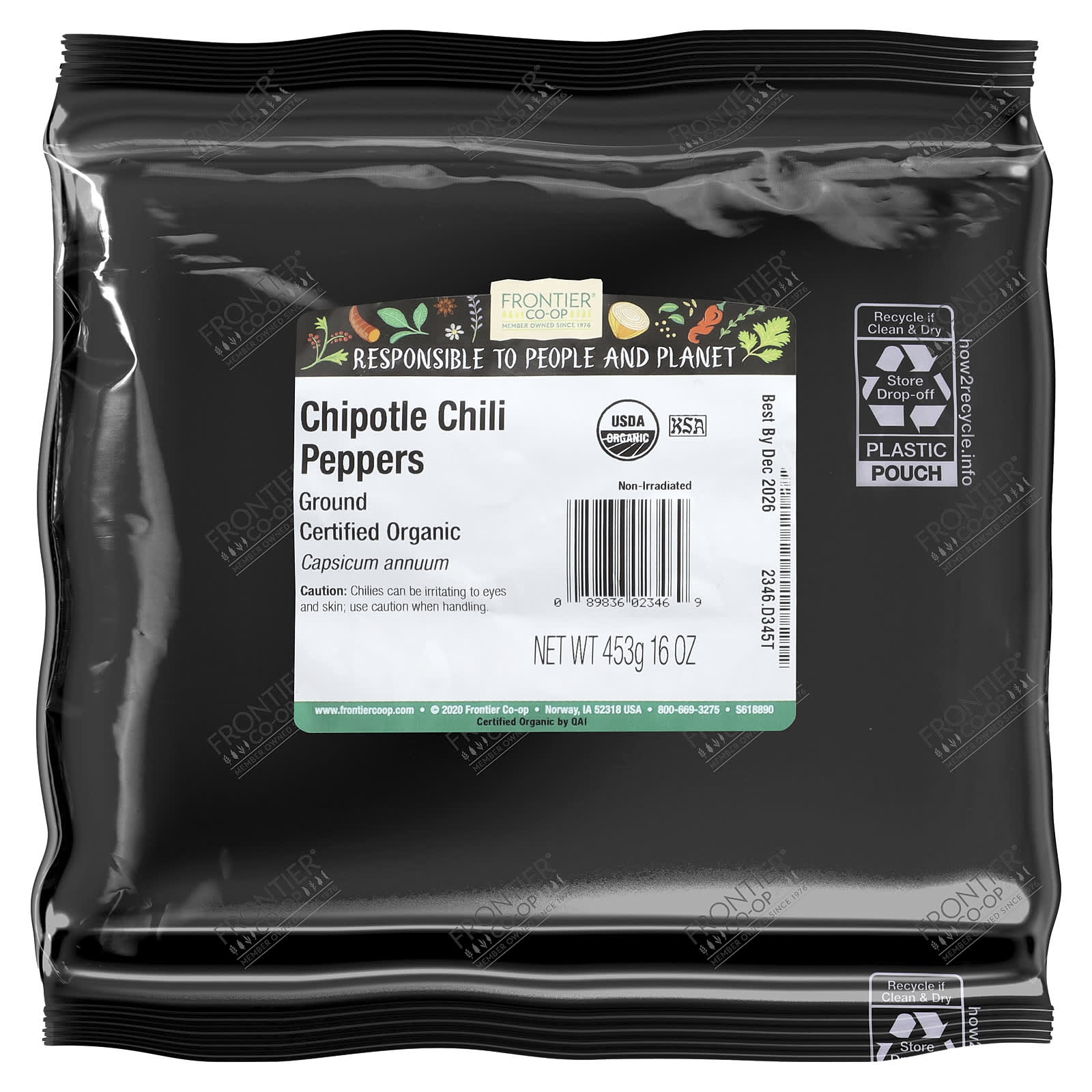 Перец Chipotle Frontier®, происходящее от слова chilpoctli на языке науатль (что означает «копченый чили»), на самом деле представляет собой сушеный копченый перец халапеньо. Их сладко-дымный аромат часто используется в блюдах юго-западной и мексиканской кухни, чтобы придать им относительно мягкую, но землистую пряность всему, от перца чили до барбекю.