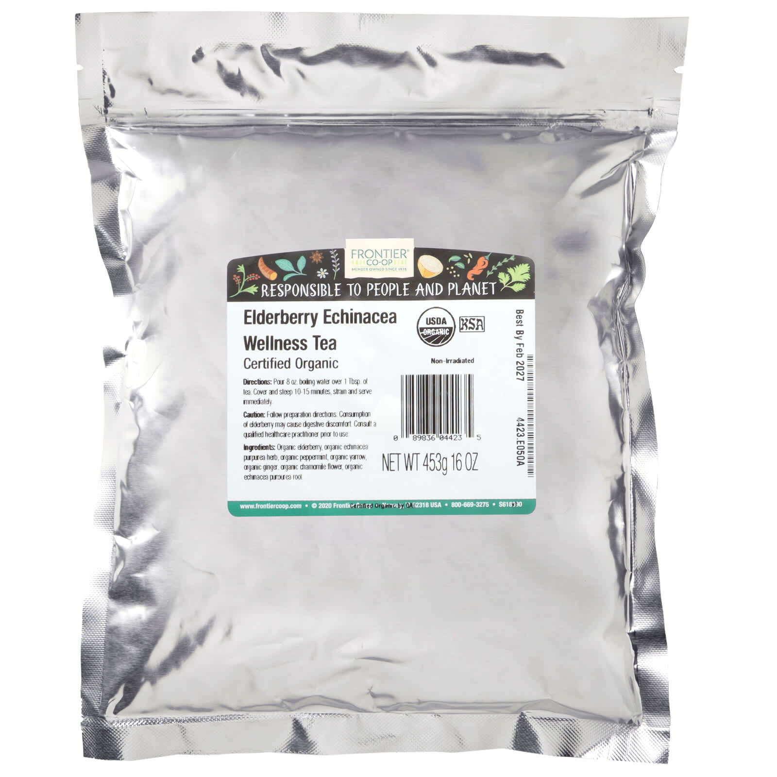 Чай для хорошего самочувствия с бузиной и эхинацеей Frontier Co-op® содержит яркие нотки успокаивающих ягод, цветочную эхинацею и нотку перечной мяты! Этим чаем можно наслаждаться в любое время года и сделать его неотъемлемой частью повседневной жизни, чтобы поддерживать хорошее самочувствие.