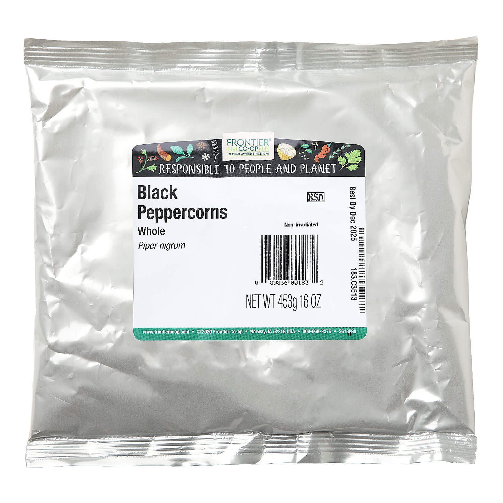 Черный перец горошком, одна из самых популярных специй в мире, — это незрелые зеленые плоды (ягоды), высушенные на солнце после ферментации. Цельный черный перец горошком Frontier® придает пикантность и остроту практически любому блюду и отлично подходит для придания аромата как в кулинарии, так и за столом. Одинаковые по размеру и вкусу они идеально подходят для использования в мельницах для перца. Они также хорошо сочетаются с другими травами и специями и обычно используются в смесях приправ. Черный перец горошком Frontier — это сертифицированный кошерный продукт, который не подвергался облучению.