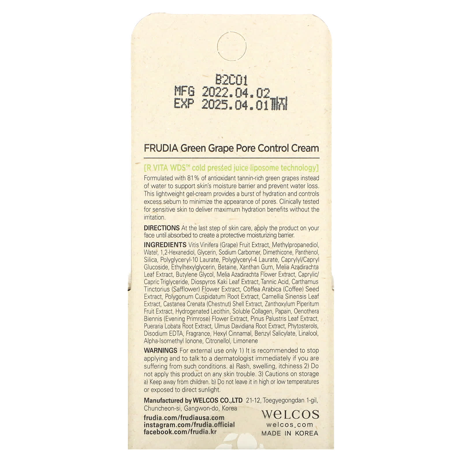 Экстракт плодов винограда (Vitis vinifera), метилпропандиол, вода, 1,2-гександиол, глицерин, карбомер натрия, диметикон, пантенол, диоксид кремния, полиглицерил-10 лаурат, полиглицерил-4 лаурат, каприлил/каприл глюкозид, этилгексилглицерин, бетаин, ксантановая камедь, экстракт листьев нима (Melia azadirachta), бутиленгликоль, экстракт цветков нима (Melia azadirachta), каприловый/каприновый триглицерид, экстракт листьев хурмы восточной (Diospyros kaki), дубильная кислота, экстракт цветков сафлора (Carthamus tinctorius), экстракт зерен кофе арабики (Coffea arabica), экстракт корня рейнутрии японской (Polygonum cuspidatum), экстракт листьев зеленого чая (Camellia sinensis), экстракт скорлупы каштана (castanea crenata), экстракт сычуаньского перца (Zanthoxylum piperitum), гидрогенизированный лецитин, растворимый коллаген, папаин, экстракт цветков примулы вечерней (Oenothera biennis), экстракт хвои сосны болотной (Pinus palustris), экстракт корня пуэрарии дольчатой (Pueraria lobata), экстракт корня вяза Давида (Ulmus davidiana), фитостеролы, двунатриевая ЭДТК, отдушка, гексил циннамал, бензилсалицилат, линалоол, альфа-изометилионон, цитронеллол, лимонен.