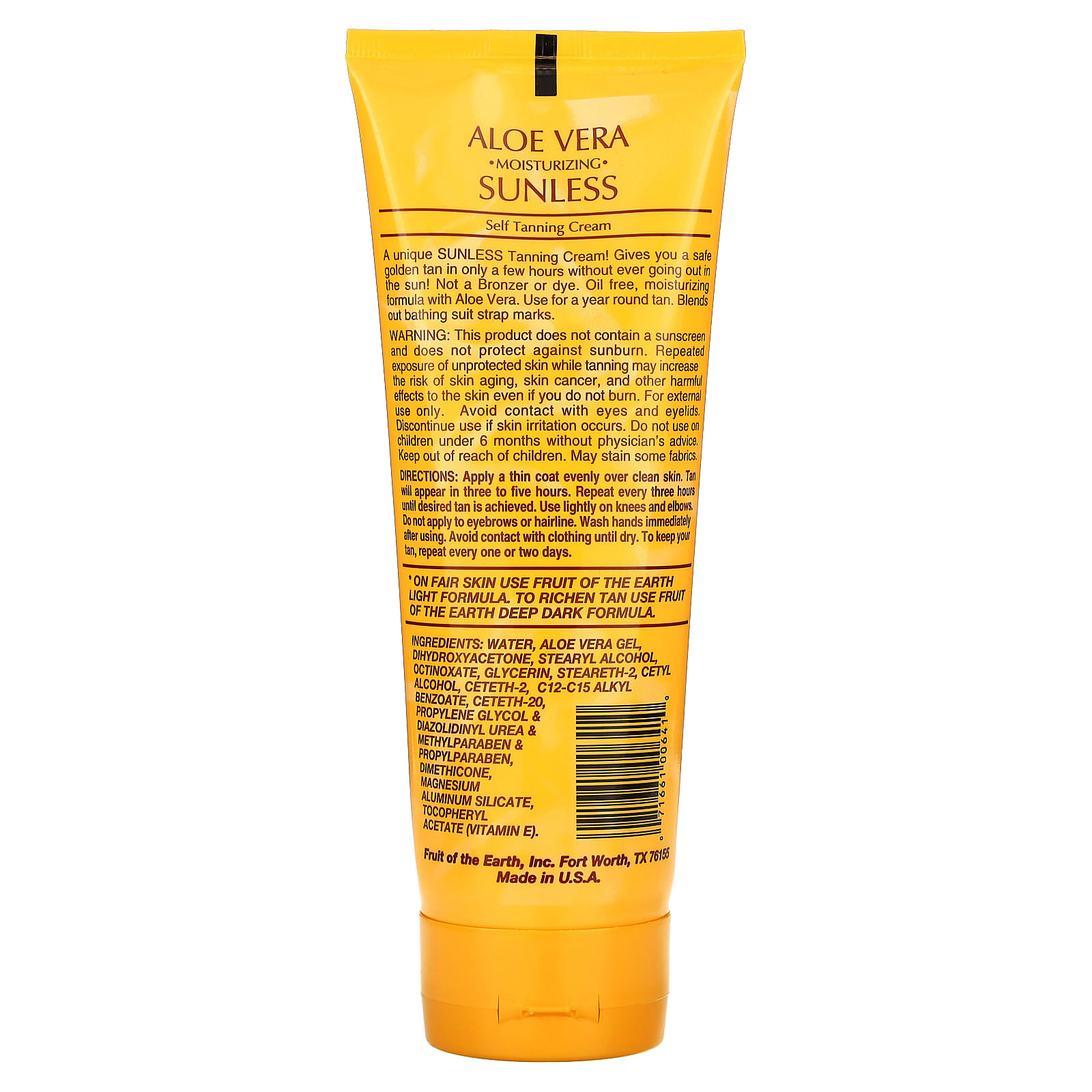 Fruit of the Earth, крем для загара от среднего до темного, с алоэ вера, 237 мл (8 жидк. унций)