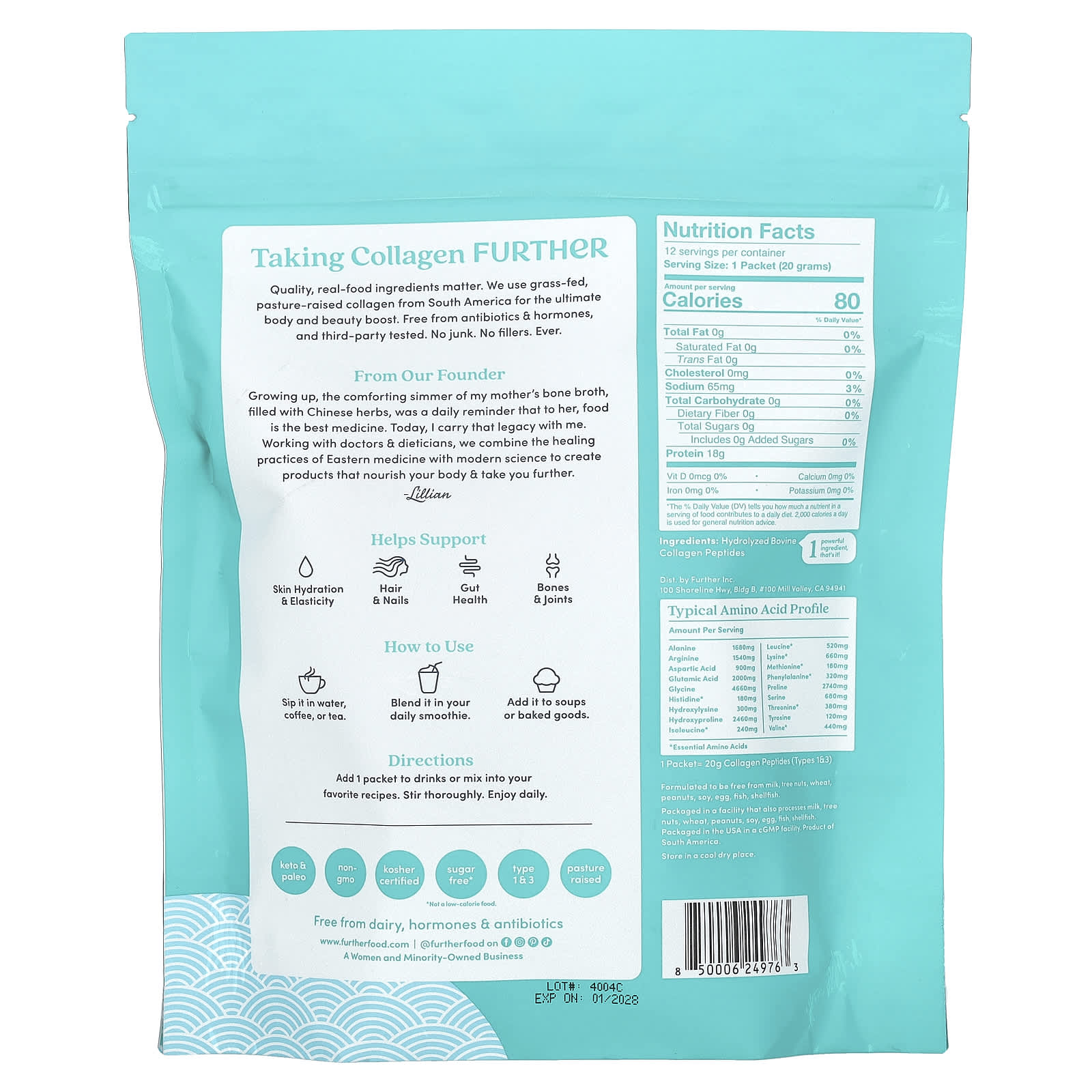 Важны качественные, натуральные пищевые ингредиенты. Мы используем коллаген, выращенный на пастбищах и выращенный на пастбищах, из Южной Америки для максимального улучшения здоровья и красоты. Не содержит антибиотиков и гормонов и протестирован сторонней организацией. Никакого мусора. Без наполнителей. Никогда.