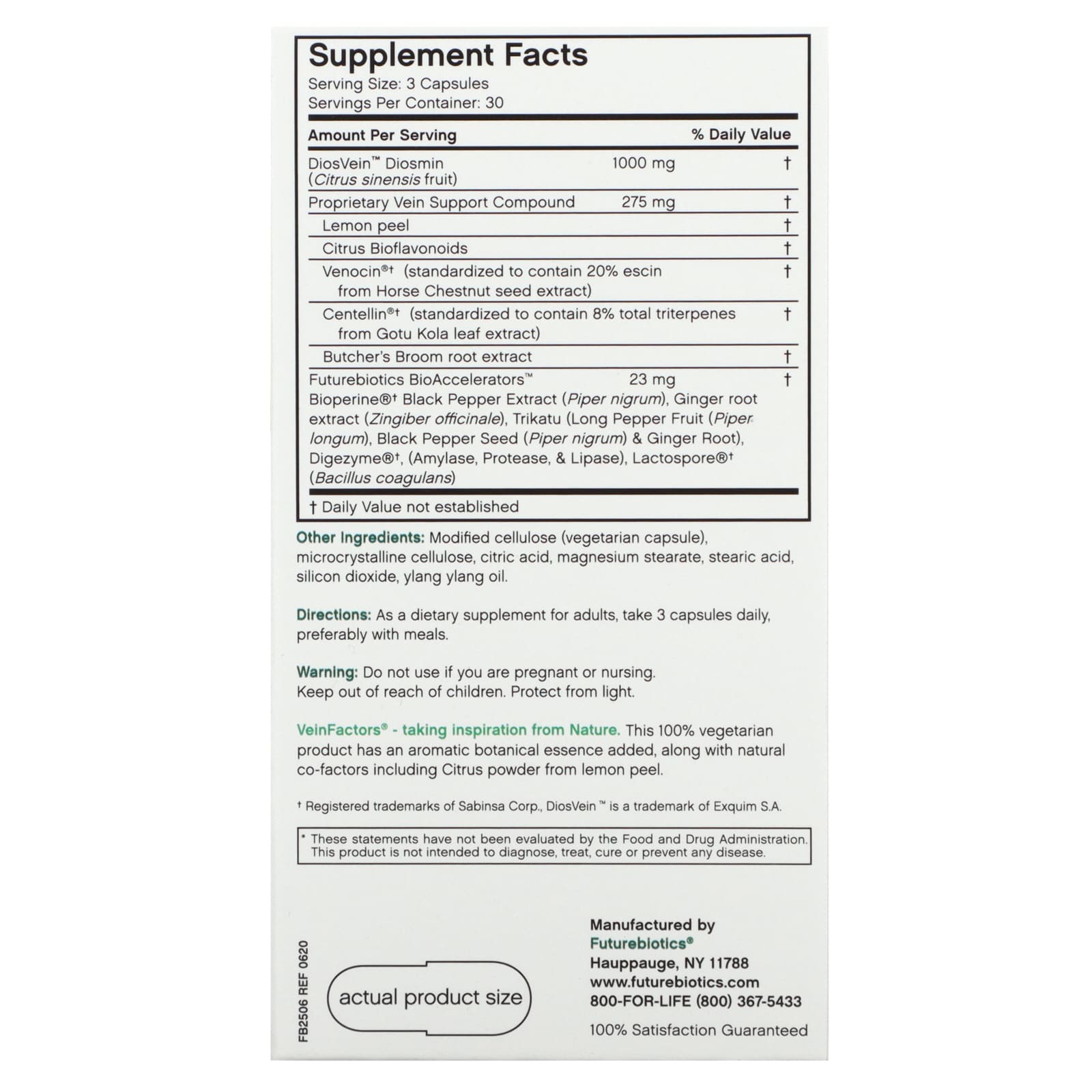 Эффективность VeinFactors® повышается за счет биоакселераторов Futurebiotics BioAccelerators™. Клинически проверенный экстракт черного перца (Bioperine®) улучшает биодоступность питательных веществ, а наш запатентованный натуральный состав из экстракта имбиря, трикату, высокоэффективных комплексов Digezyme® и Lactospore® улучшает пищеварение и усвоение.
