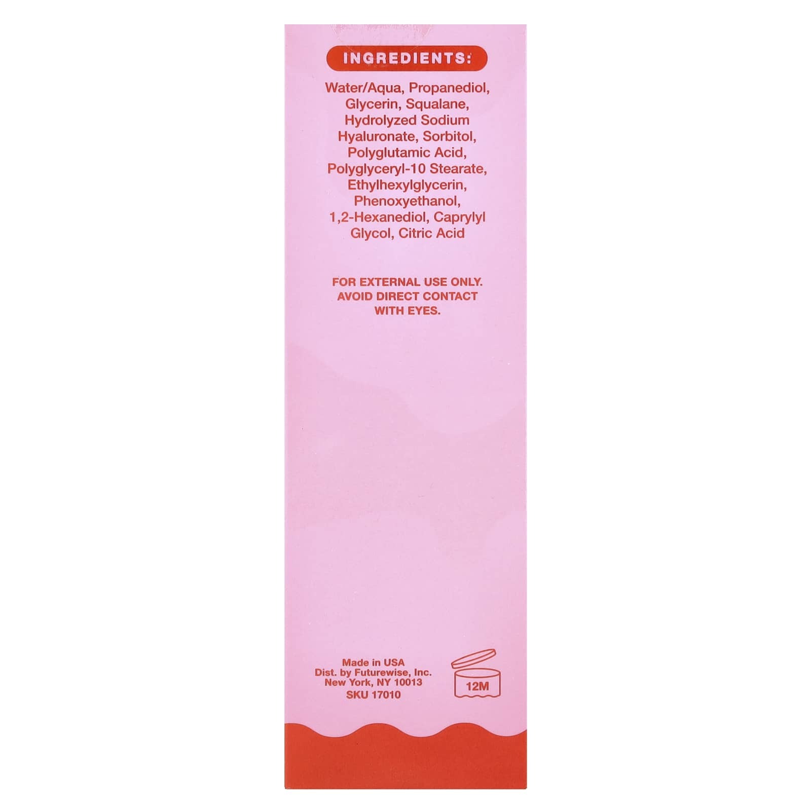 Вода (Aqua), пропандиол, глицерин, сквалан, гидролизованный гиалуронат натрия, сорбитол, полиглутаминовая кислота, полиглицерил-10 стеарат, этилгексилглицерин, феноксиэтанол, 1,2-гександиол, каприлилгликоль, лимонная кислота.