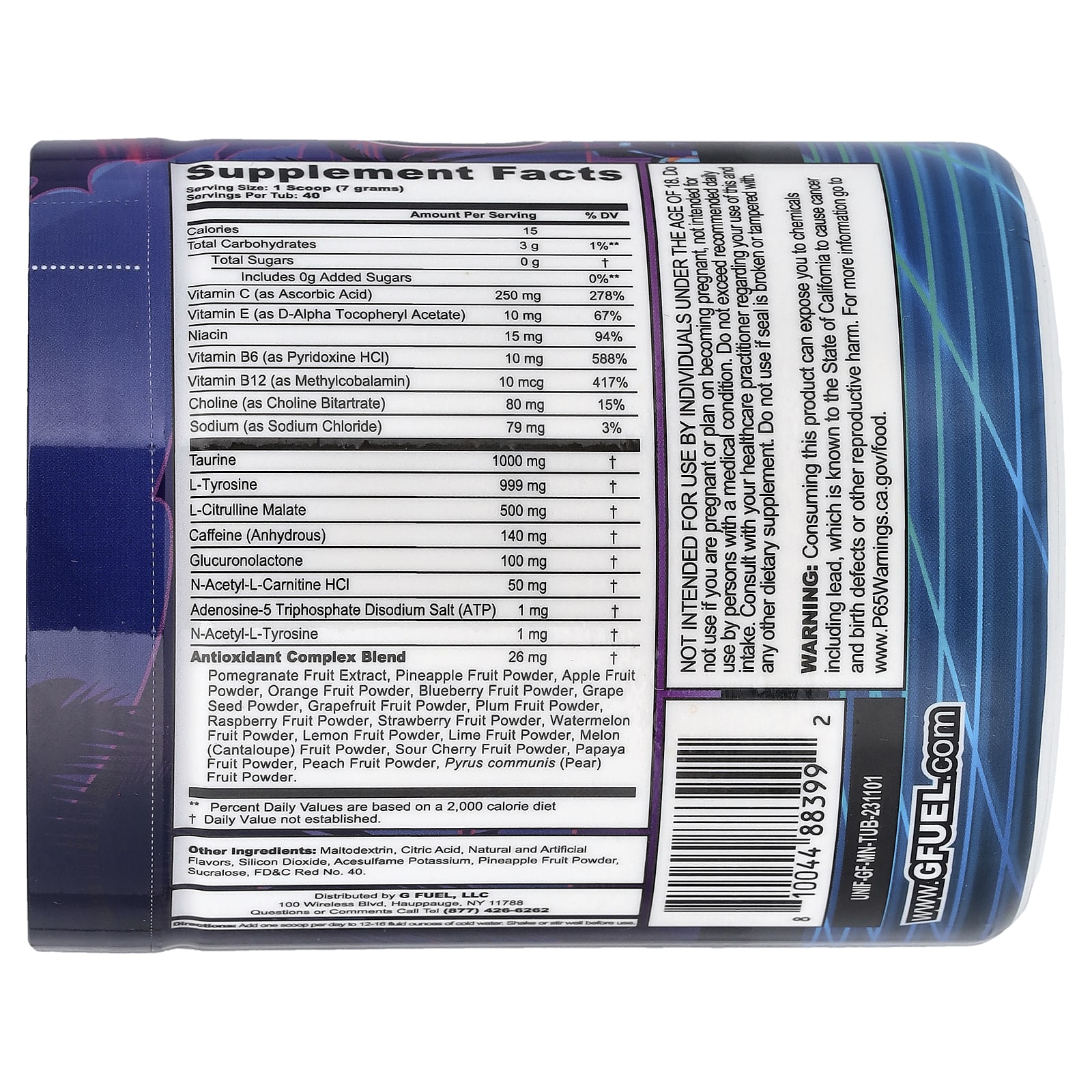 Мальтодекстрин, лимонная кислота, натуральные и искусственные ароматизаторы, диоксид кремния, ацесульфам калия, порошок из ананаса, сукралоза, краситель красный 40 FD&C.