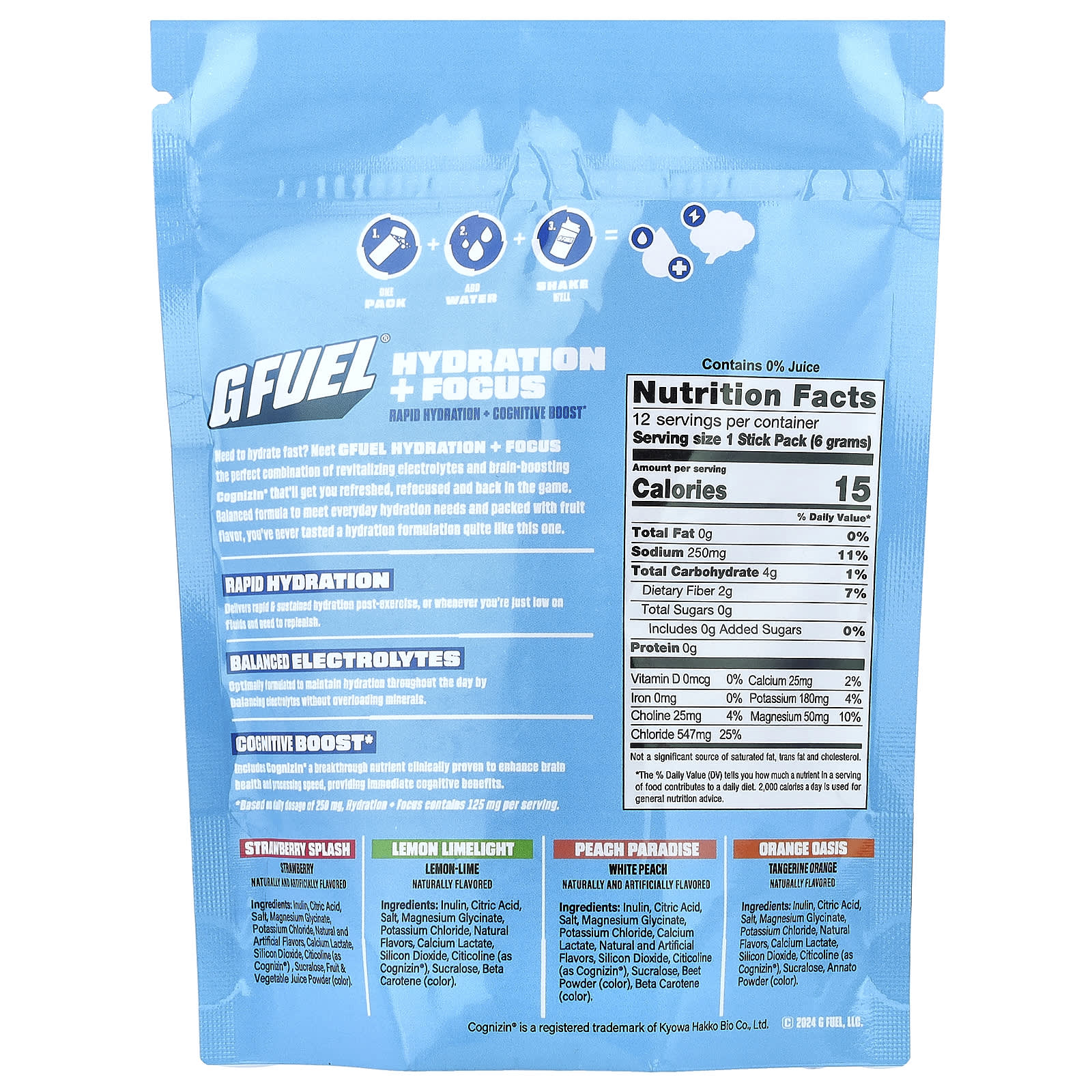 Требуется быстрое увлажнение? Познакомьтесь с GFUEL Hydration + Focus, идеальным сочетанием восстанавливающих электролитов и улучшающего работу мозга Cognizin', которое поможет вам освежиться, скорректировать концентрацию внимания и вернуться к игре. Сбалансированная формула, удовлетворяющая повседневные потребности организма в жидкости, с фруктовым вкусом. Вы еще никогда не пробовали такого средства для поддержания водного баланса.