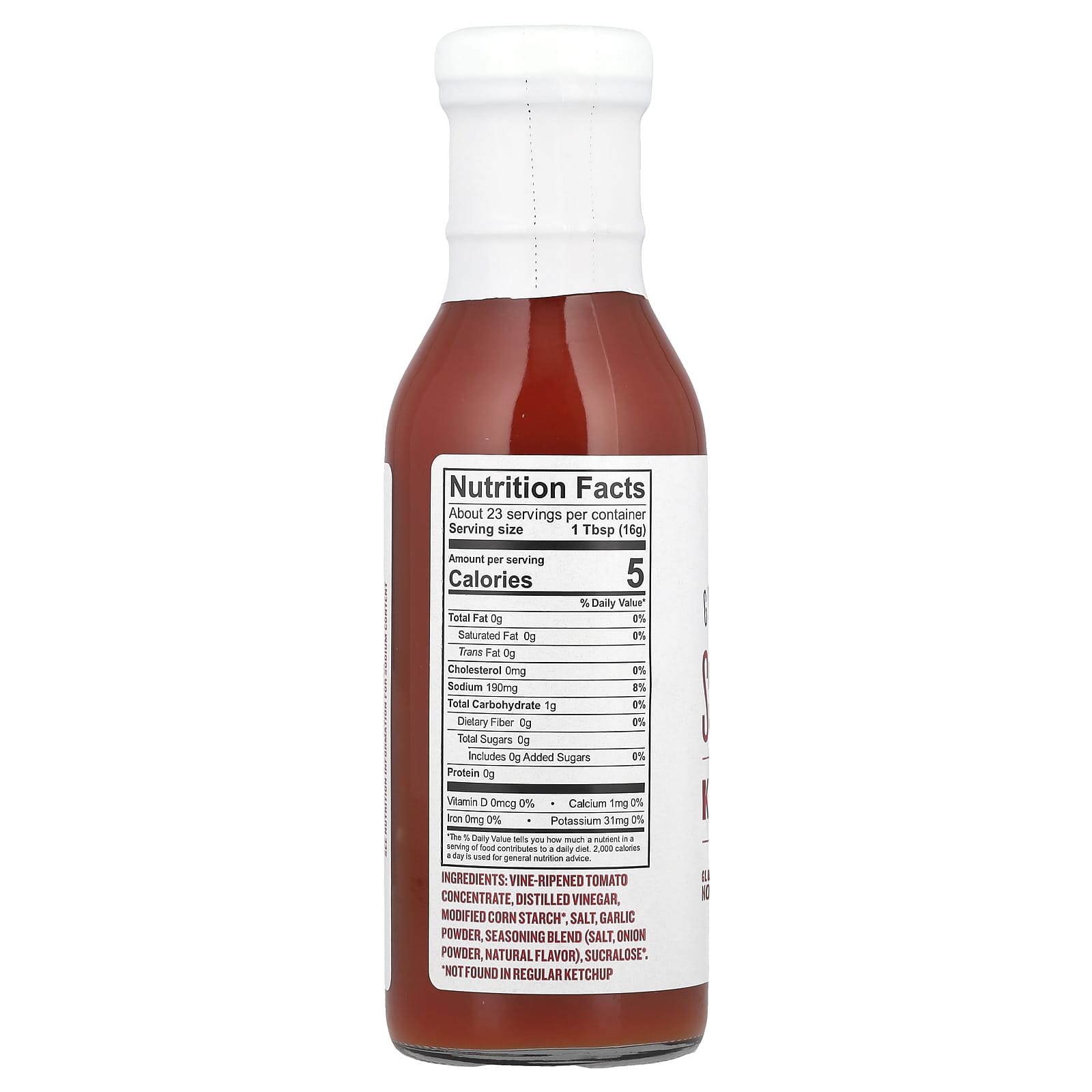 Концентрат из созревших томатов, дистиллированный уксус, модифицированный кукурузный крахмал *, соль, чесночный порошок, смесь приправ (соль, луковый порошок, натуральный ароматизатор), сукралоза *.
