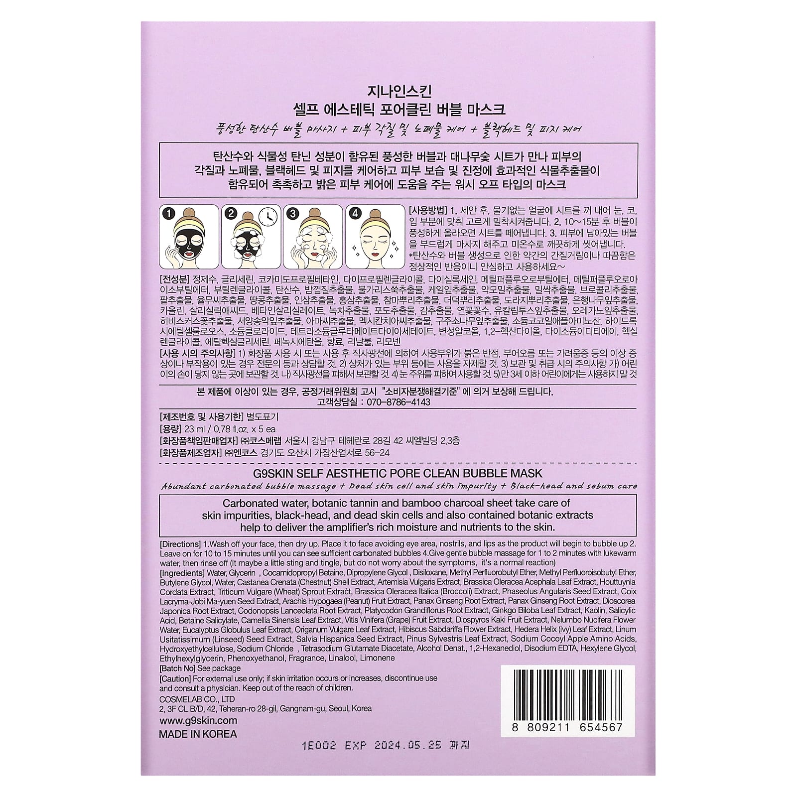 Газированная вода, растительные танины и лист бамбукового угля заботятся о загрязнениях кожи, угрях и омертвевших клетках кожи, а также содержащиеся в усилителе растительные экстракты помогают доставить коже насыщенную влагу и питательные вещества.