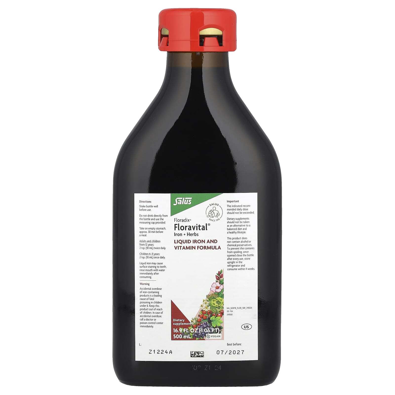Floradix, Floravital®, железо и травы, 500 мл (16,9 жидк. унции)