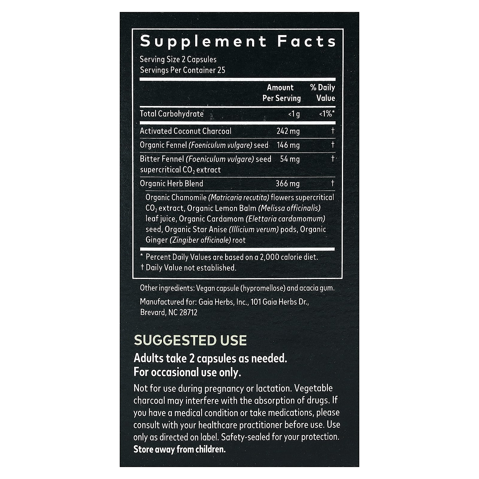 Не применять во время беременности или кормления грудью. Растительный уголь может препятствовать всасыванию лекарств. При наличии заболеваний или приеме лекарств перед началом применения этого продукта необходимо проконсультироваться с врачом. Применять только согласно инструкции. Продукт герметично упакован в целях безопасности.