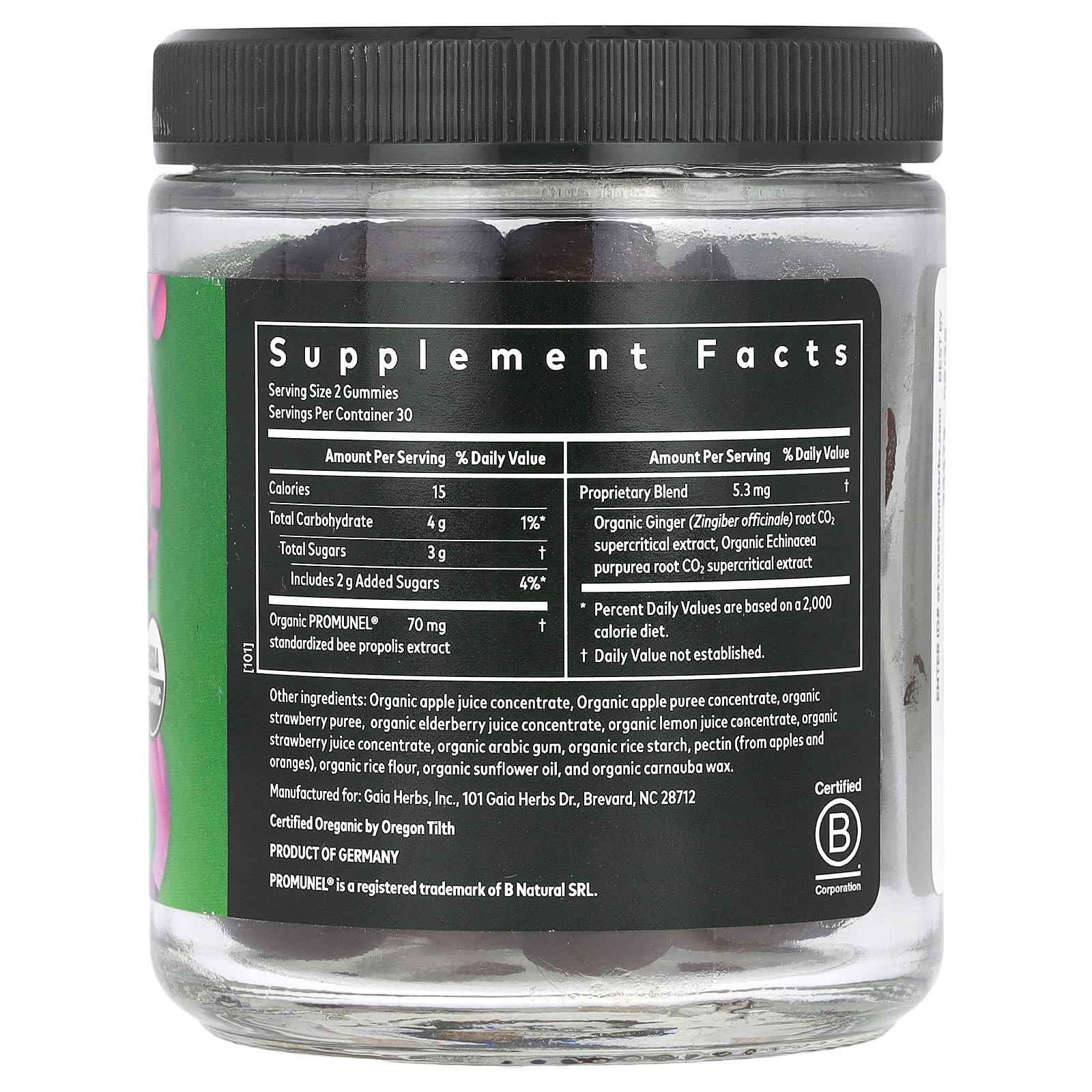- С имбирем, эхинацеей и клинически изученным пчелиным прополисом