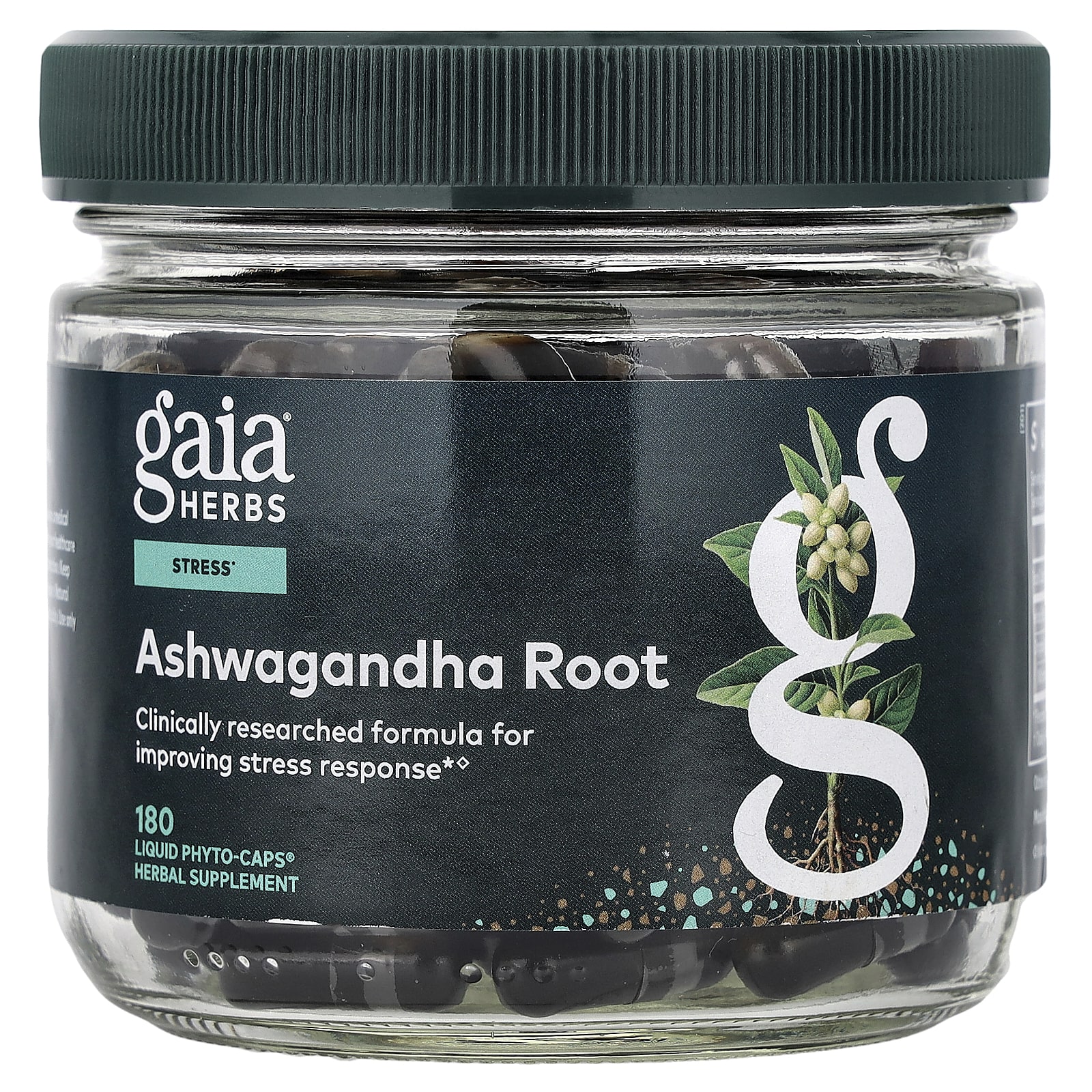 Gaia Herbs, корень ашваганды, 180 капсул Liquid Phyto-Caps
