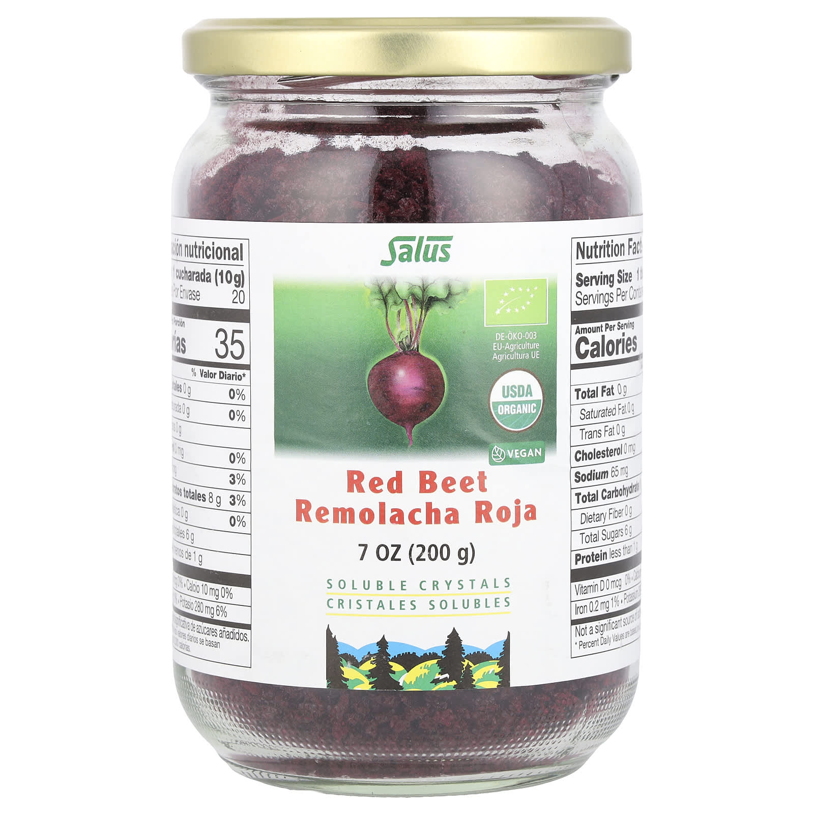 Это 7 унций. банка кристаллов красной свеклы Salus была изготовлена из ок. 5,5 фунтов. клубней красной свеклы.