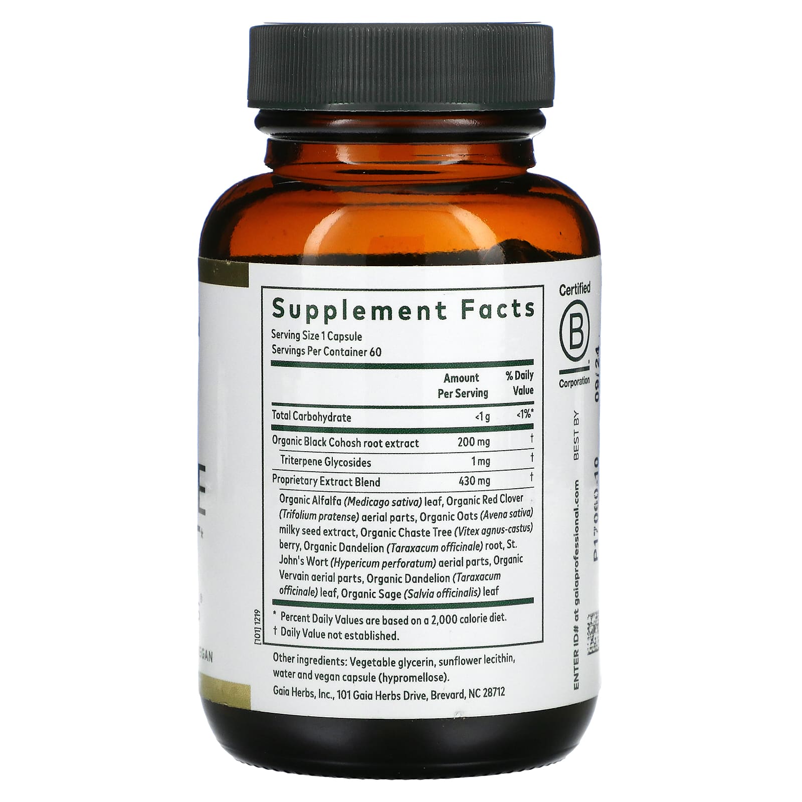 | Запатентованная смесь экстрактов Листья люцерны ▲ (Medicago sativa), ботва красного клевера ▲ (Trifolium pratense), свежий экстракт семян овса (Avena sativa), ягоды витекса обыкновенного ▲ (Vitex agnus-castus), корень одуванчика ▲ (Taraxacum officinale), зверобой Бутоны цветков сусла & ботва (Hypericum perforatum), вербена надземная ▲, лист одуванчика ▲ (Taraxacum officinale), лист шалфея ▲ (Salvia officinalis) | 430 мг | † |