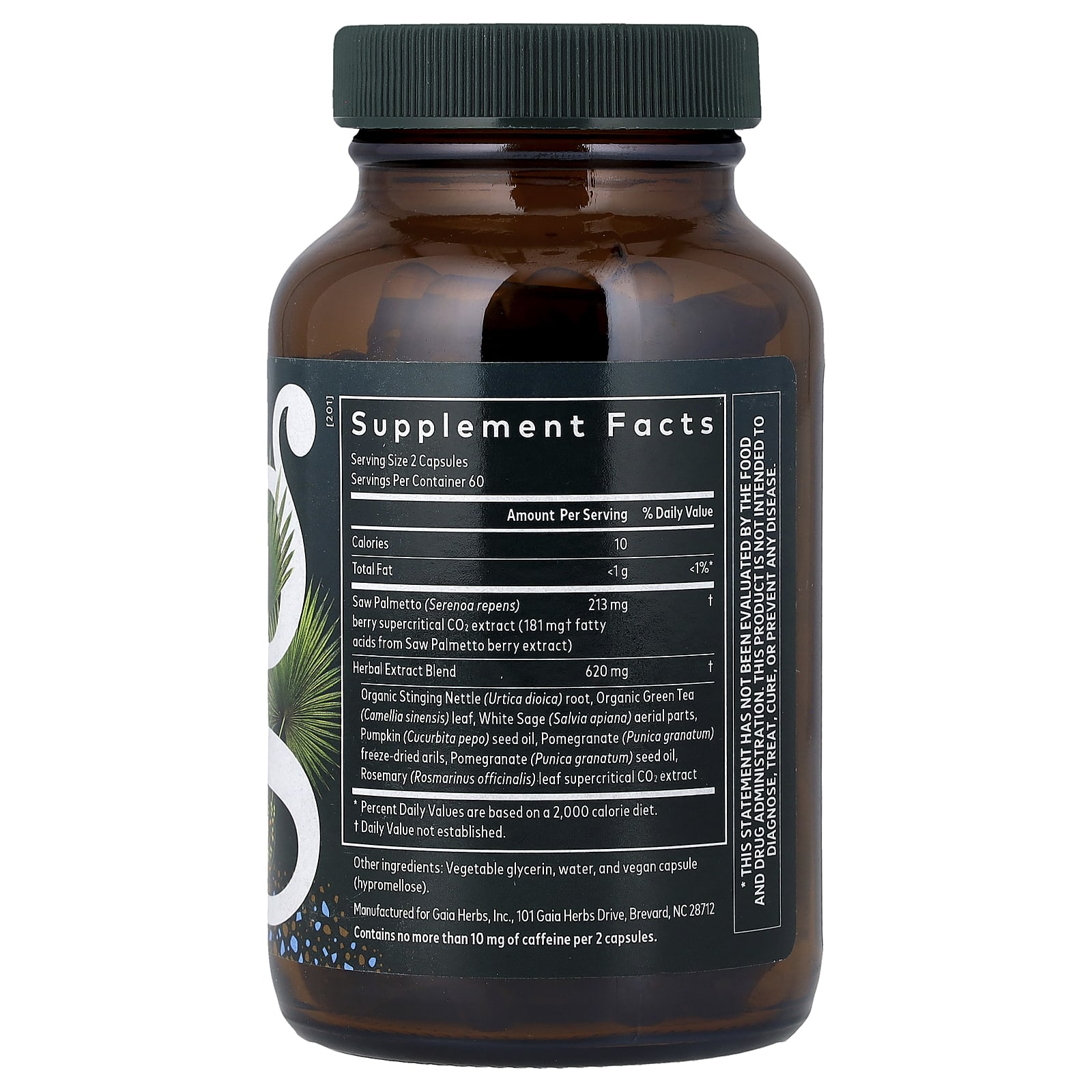 | Смесь экстрактов трав корень органической крапивы двудомной (Urtica dioica), органический лист зеленого чая (Camellia sinensis), надземные части шалфея белого (Salvia apiana), масло семян тыквы (Cucurbita pepo), сублимированные зернышки граната (Punica granatum), гранат (Punica granatum) масло из семян розмарина, сверхкритический углекислотный экстракт листьев розмарина (Rosmarinus officinalis). | 620 мг | † |